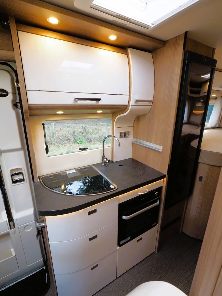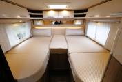 Fully featured with a comfortable lounge with adjustable dining table making a great place to dine and entertain and offering a simple conversion to provide a 3rd berth. A built in Smart TV offers connectivity to entertainment from Netflix, Prime TV, You Tube amongst others. The kitchen area provides a 3 burner gas hob, combi oven and grill, sink with mixer tap and a large 3 way fridge freezer with dual door opening. A private washroom has home from home comfort with a flushing cassette toilet, sink with large vanity mirror and a separate shower cubicle. The rear bedroom is a comfortable place to relax and offers twin single beds or converts to a large double bed with pull down steps to ease access.