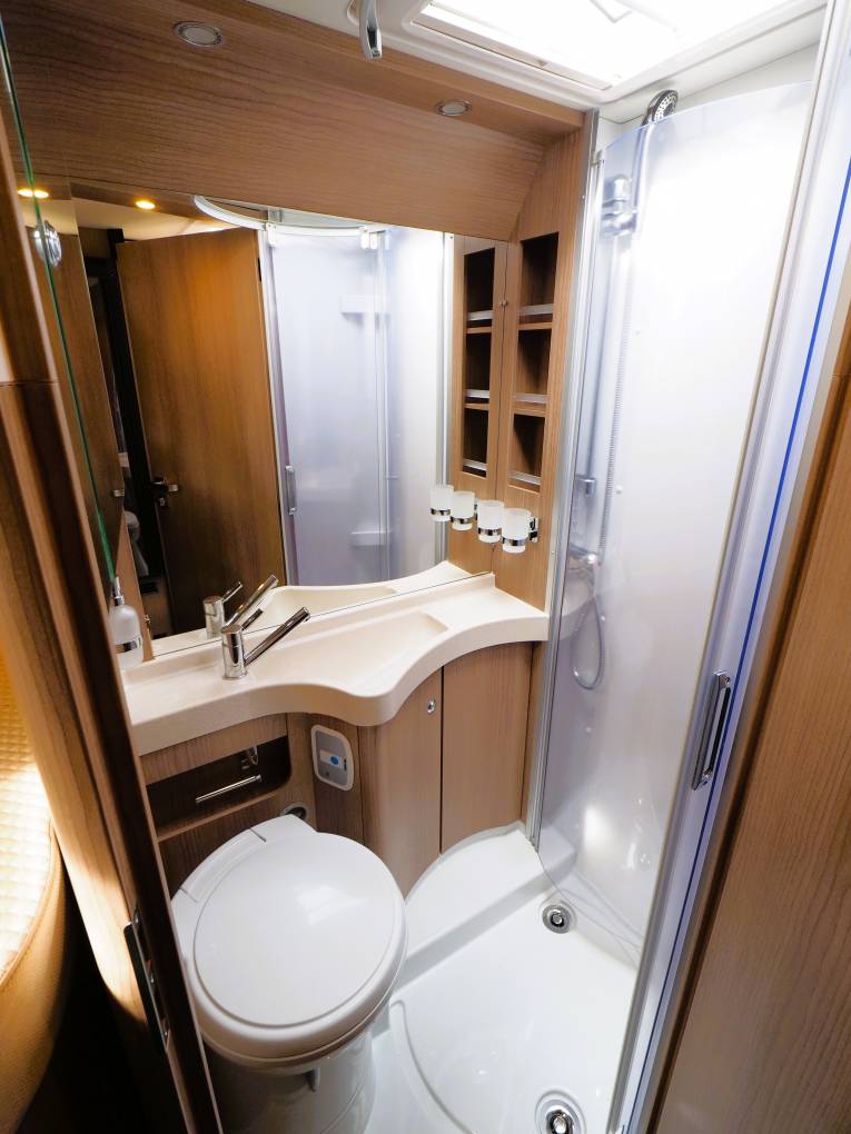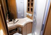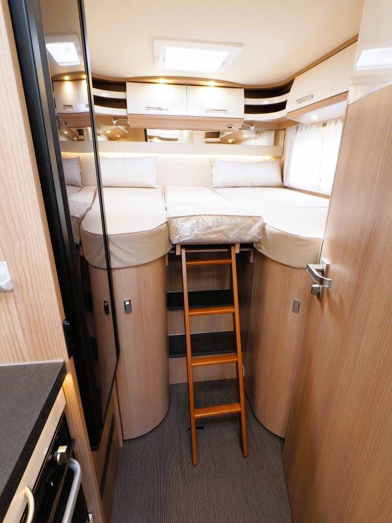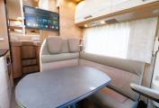 Lots of storage around the motorhome including two large hanging wardrobes and externally the large rear garage can accomodate all your outdoor seating and has space for bicycles or a small scooter. A Thule Omnistore wind out awning is fitted to create a great outdoor space for al fresco designing and offers shade from the sun.