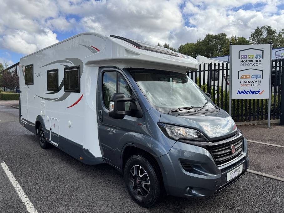 2019 Roller Team T‑Line 740 that marries Italian design and sensible engineering. Built on the popular Fiat Ducato chassis, this coachbuilt vehicle offers a refined layout with 4 berths and 4 seat belts.