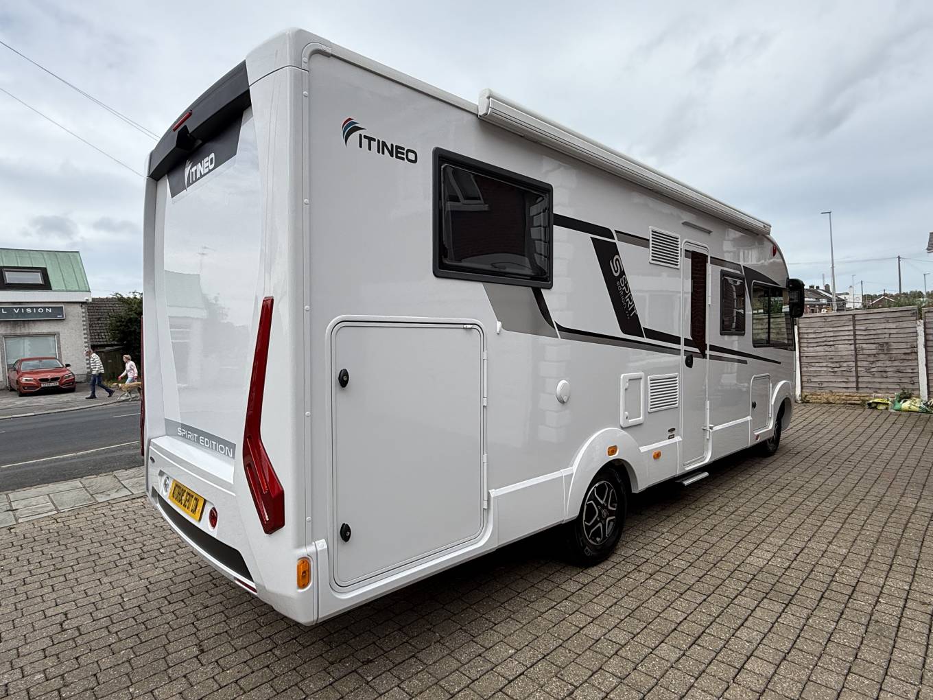 Itineo MC740 Spirit Edition, a Modern A Class Motorhome from Rapido, with Island Bed, Full Sized Garage and Drop Down Bed. This motorhome was registered in September 2024, it has one owner with 1,900 miles on the clock with 9 Speed Auto Gearbox and is in immaculate condition. At the rear of the van is the main bedroom with an island bed and a large garage underneath. Forward from this is the bathroom with separate shower compartment and in the centre there is a well equipped kitchen. Towards the front is the lounge area with settees, captains seats and adjustable table and over this is the drop down bed. It has a beautifully finished light interior and comes with Cab Air Con, Cruise Control, Cat 1 Alarm, Cat 5 Tracker, Rear Camera, DAB Radio, Alloy Wheels, TV, Canopy Awning, Electric Step, 160W Solar Panel, Wi Fi and 2 x Leisure Batteries. A truly stunning motorhome available for viewing by appointmentin Blackpool, call for more photos videos and information.