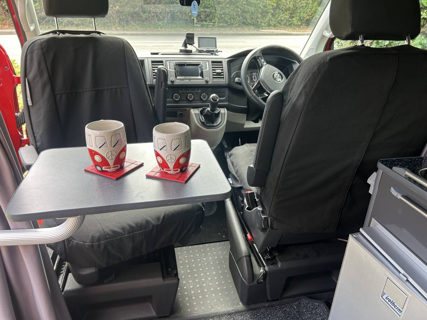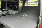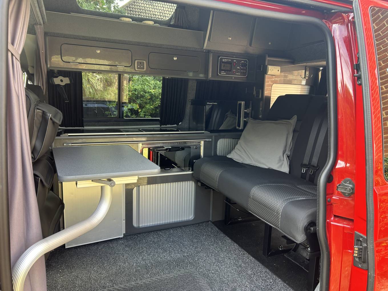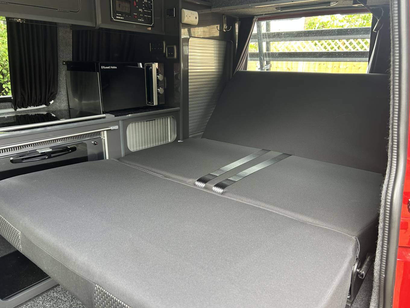 This is an exceptional T6 Highline camper van that has been professionally converted by CAMBRIDGE CAMPERVANS to a very high standard with a LEISURE DRIVE High Top roof. As a result you have a fantastic 2 berth camper van with standing headroom and very generous storage space. This particular camper van is presented in excellent condition and is packed with features including Fiamma Awning, the excellent RIB bed, Microwave Oven, Grill and Gas Hob, 12 volt fridge with ice compartment, cold water sink as well as the Webasto Diesel Heater to keep you warm as toast throughout the year.