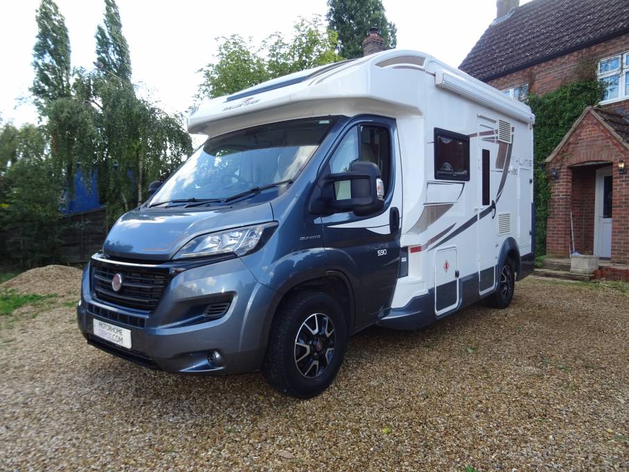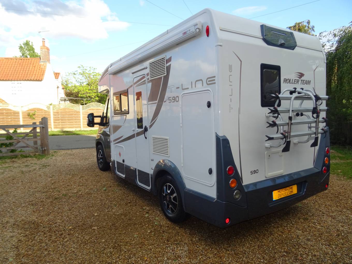 Motorhome Depot Norwich are pleased to offer for sale this Roller Team T-Line 590, 2018 this compact and cleverly designed 4-berth motorhome gives good quality throughout. With one owner on the V5, and 38,451 miles on the clock. The length is just under 6 metres and is located in the Downham Market area.