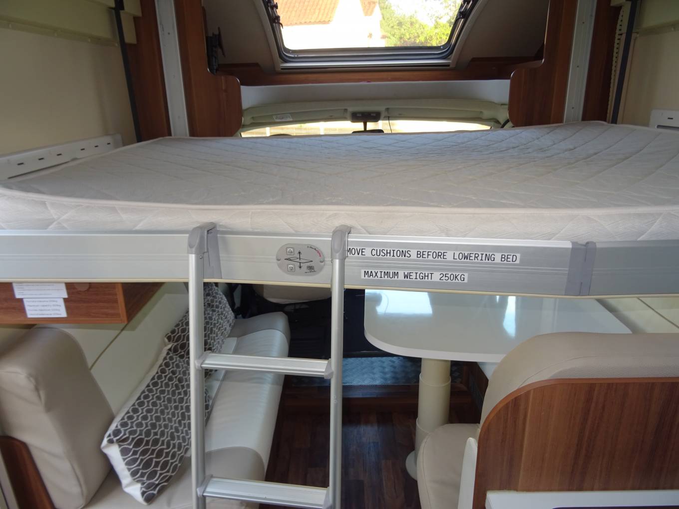 Above the lounge is the electrically operated drop-down double bed that will go down low for easy access.