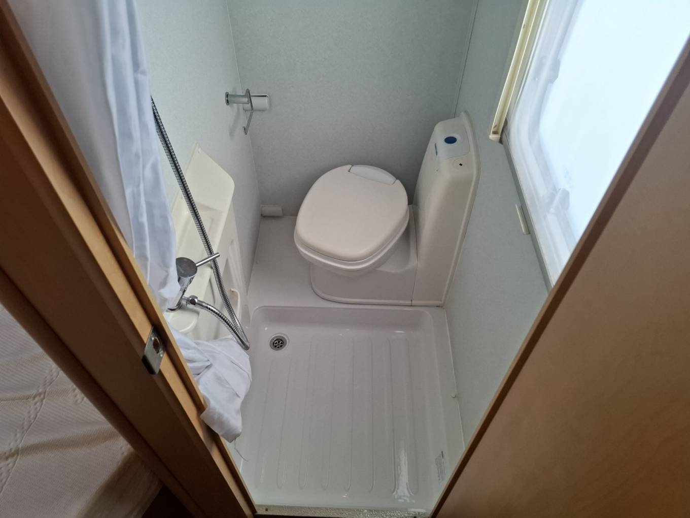 At the rear of the vehicle, you will find a double French bed which has a partitioning screen to provide privacy for the bedroom. The adjacent nearside wetroom features a toilet, a hand basin, and a shower.