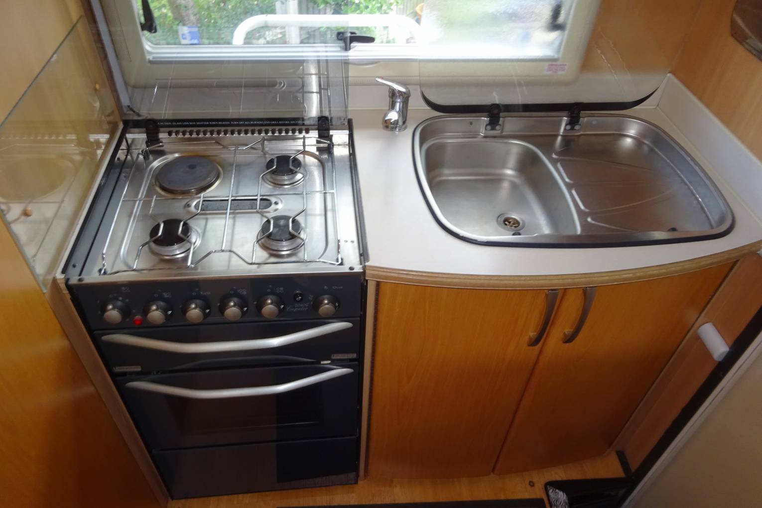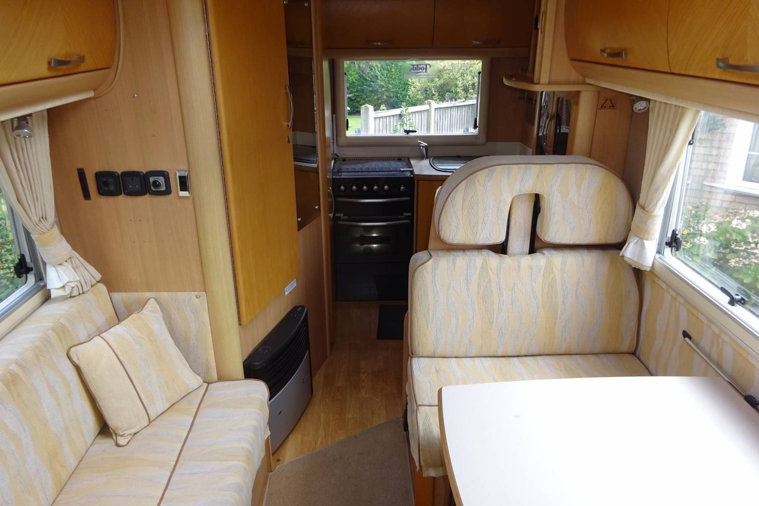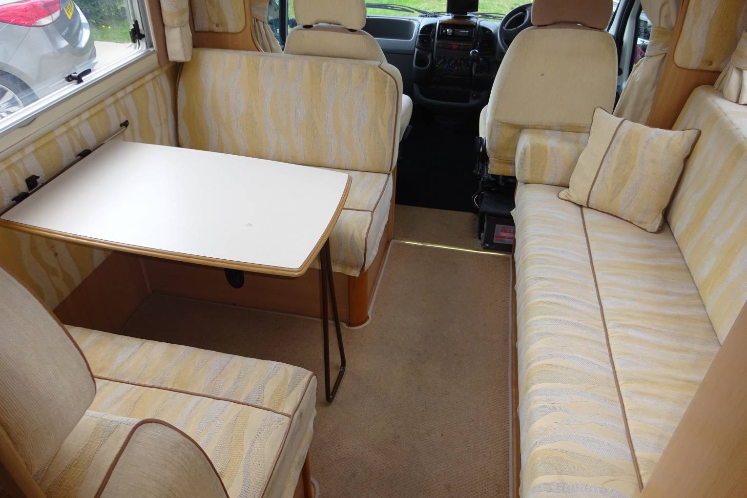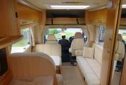 As you step inside the motorhome you can appreciate the condition of the Motorhome with a light, warm, comfortable feel. The end kitchen layout makes good use of the space. The well equipped kitchen with a 3 burner gas hob supplemented by a 4th electric ring, oven and grill, sink, and three way fridge allows for all your cooking needs. The bathroom is fitted out with a toilet sink and a separate shower, offering what you would expect from a motorhome of this standard. The living area is completed with a seating area for 6 around the fixed table. The settees easily makes up in to a large double bed or can be used as singles.There is a 2nd large double above the cab. There is ample storage throughout the motorhome for all your needs. The furnishings and cupboards are all in good condition. It is also fitted with an inverter.