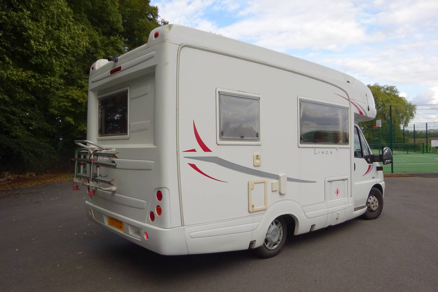 On the outside of the motorhome there is a large roll out awning, bike rack, solar panel, and a reversing camera. This is a lovely motorhome for its age, great for families and couples alike.