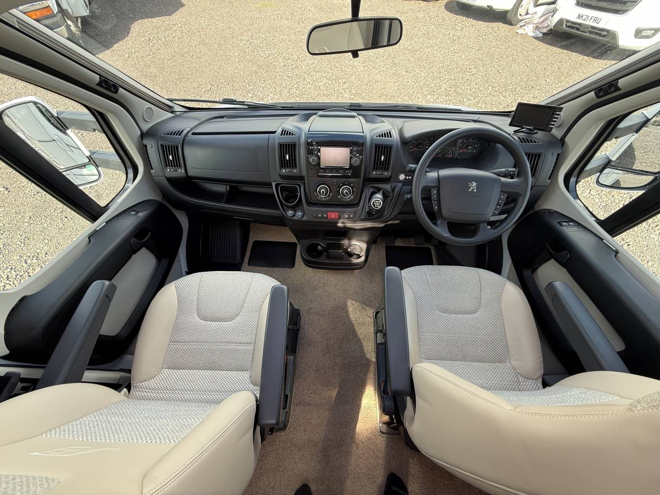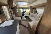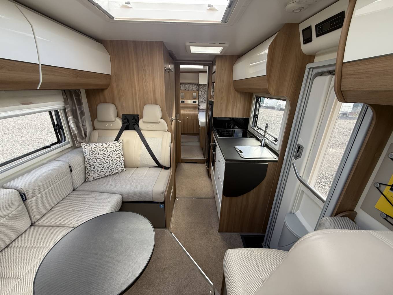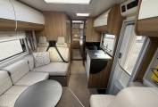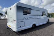 This model has a host of extras including internal cab concertina blinds, reversing camera, SATNAV, towbar, bike rack, solar panel, external mains socket, external BBQ point, TV aerial, wind out awning, awning light and access on both sides to the full width rear garage storage.