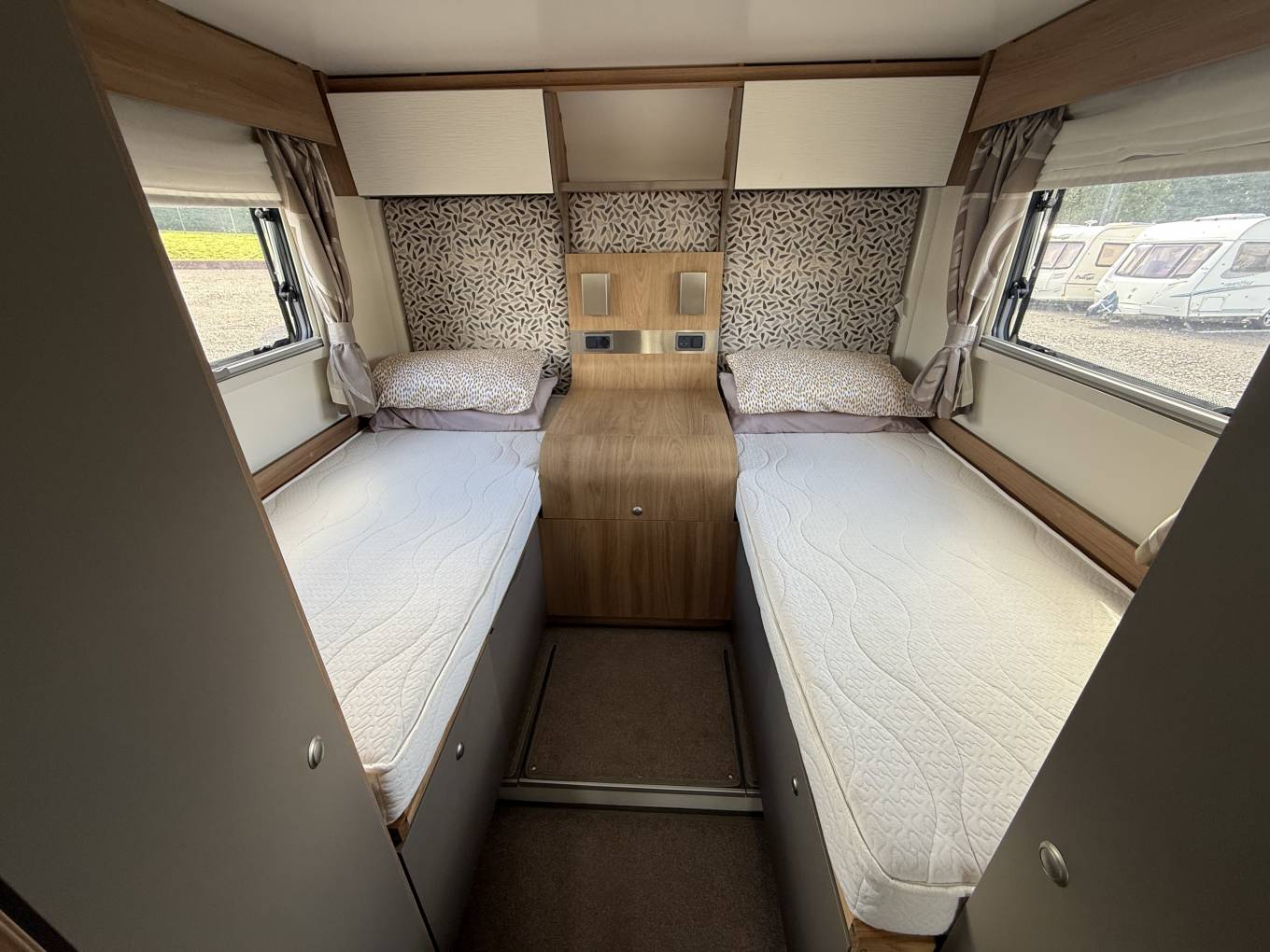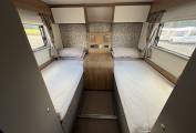 At the rear is where this motorhome comes into its own with its own bedroom with the two rear single beds with reading lights,TV, mains socket and USB charge point with easily accessed storage space underneath.