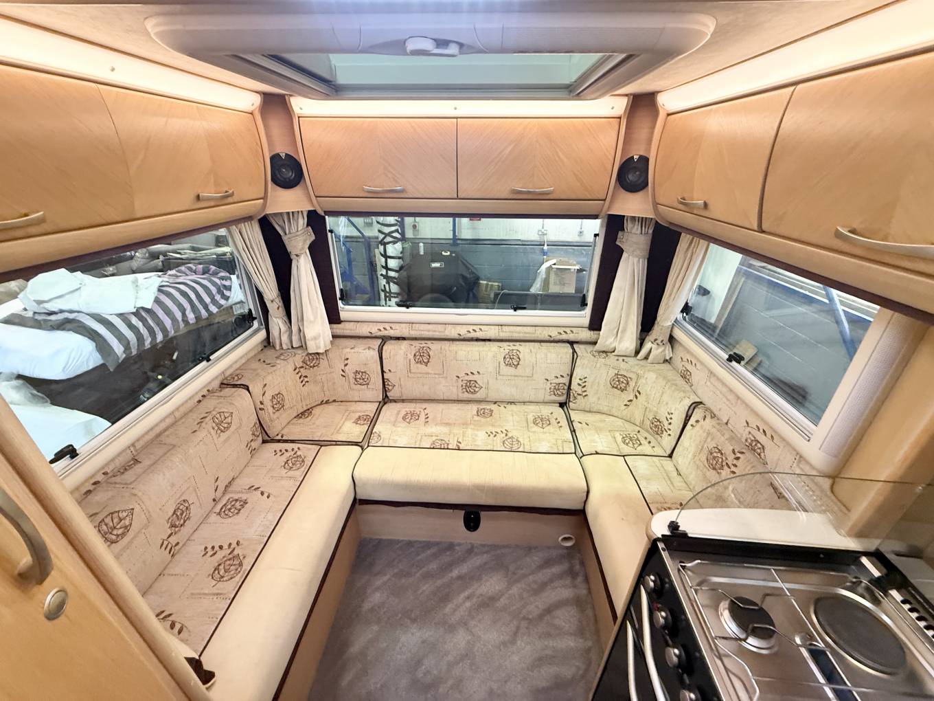 wind out canopy awning, tow bar, refilable gas bottle, solar panel, tv aireal and alloy wheels.