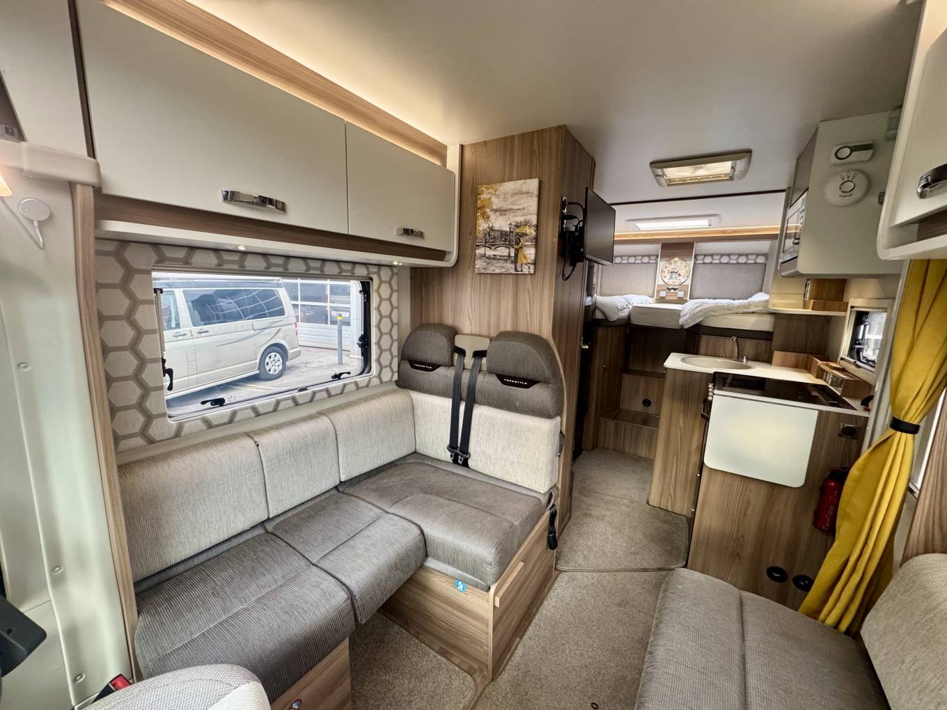 A popular Swift dealer-special based on the Escape 684 layout. The Freestyle 684 gives you a bright front lounge, mid kitchen and washroom, and fixed twin single beds over a useful rear storage area. Comfortable to tour, easy to live with, and nicely upgraded with practical extras.