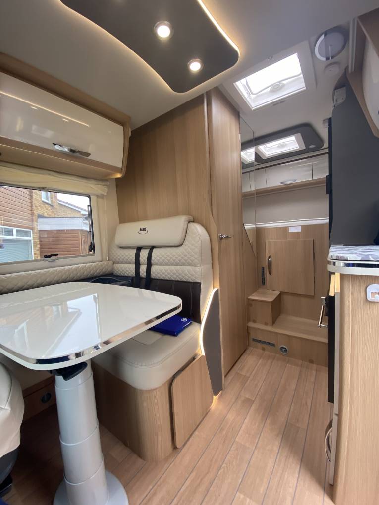 Includes 120W solar panel, heated waste tank, big garage, accessible from both sides, Skydome windows, Remis blinds throughout and alloy wheels.. Truma combi heating, high-spec cab features, and solid construction without the need for optional extras. Ample plug and USB sockets throughout.