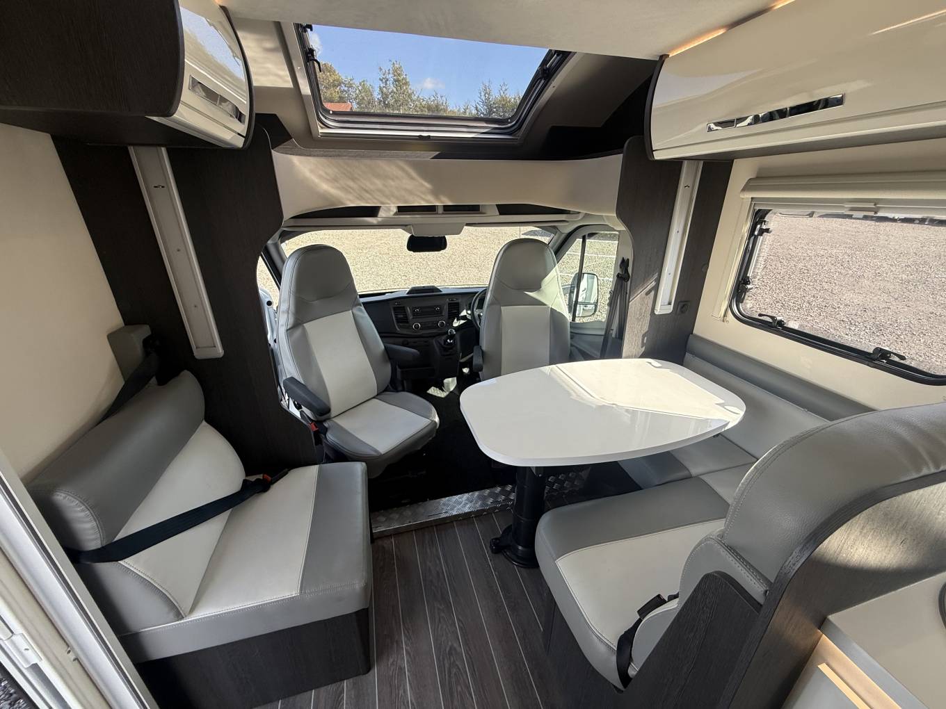 The motorhome has had 1 careful and considered family owner since it left the factory in June 2022 it’s based on the ever efficient Ford Transit 2.0 litre EURO 6 manual engine with a GVW MAM weight of 3500kg meaning anyone of any age can drive it on a normal full UK driving licence and its length is 7.45 metres with its width at 2.35 metres.