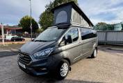 Located in Worcester, this stylish and modern Ford Transit Custom 300 Limited LWB campervan offers a superb balance of everyday usability and full touring capability. Converted professionally by Vandoc with a Skyline Scenic pop-top roof, it’s ready for adventures straight away.