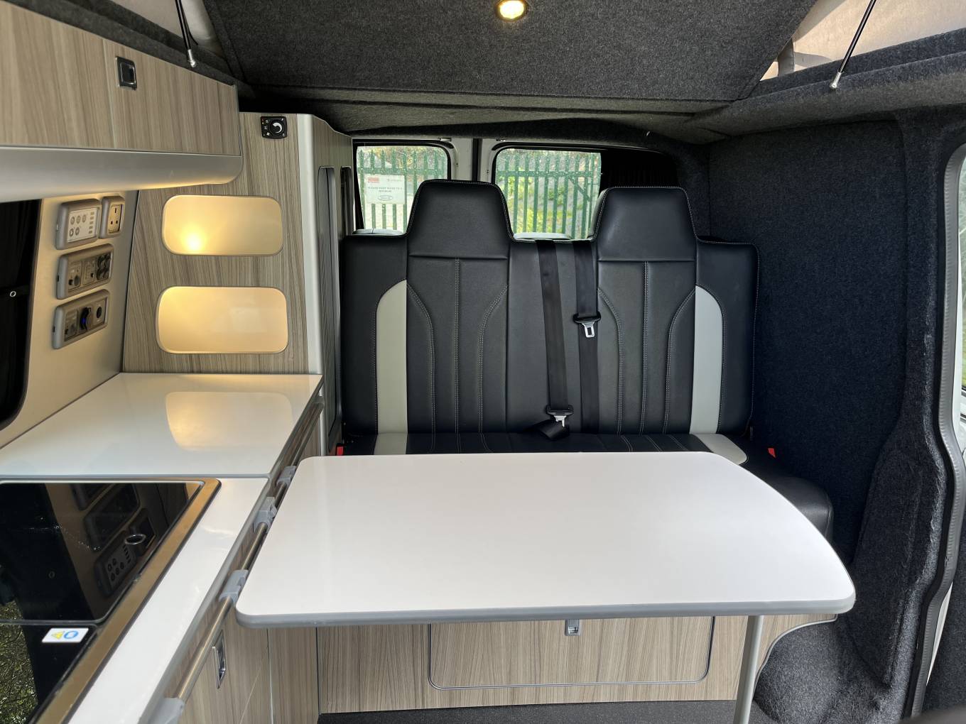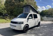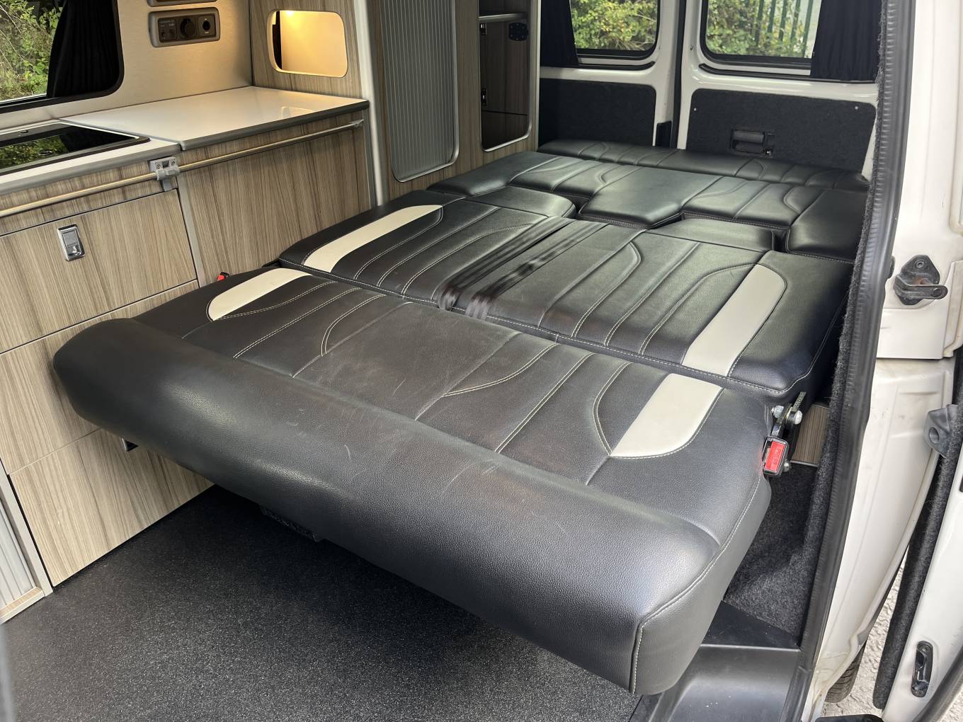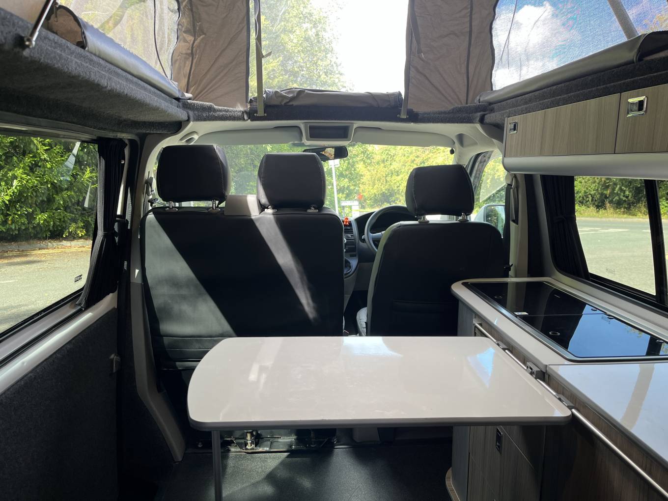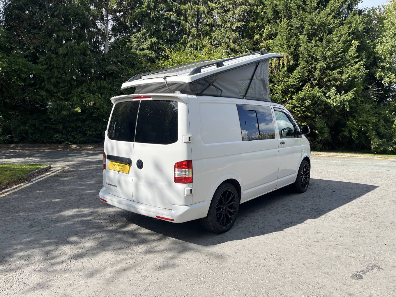 Here we have a 4 berth 2015 Volkswagen T5 T28 2.0 Startline TDi, 5 Owners, Manual, lovely professional conversion, 5 Seat Belts, Pop Top, Rock & Rock Pull Out Bed, Kitchen - Fridge, Hob & Sink & Grill, Night Heater, Tailgate, 240v Electric Hook Up & 12v, Leisure Battery, Solar Panel, 2 Front Seats with Captains Swivel Seat, 2 Rear Belted Seats, Storage Cupboards, On-board Water Tank, Radio/ DAB/Apple Play.