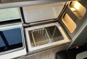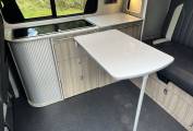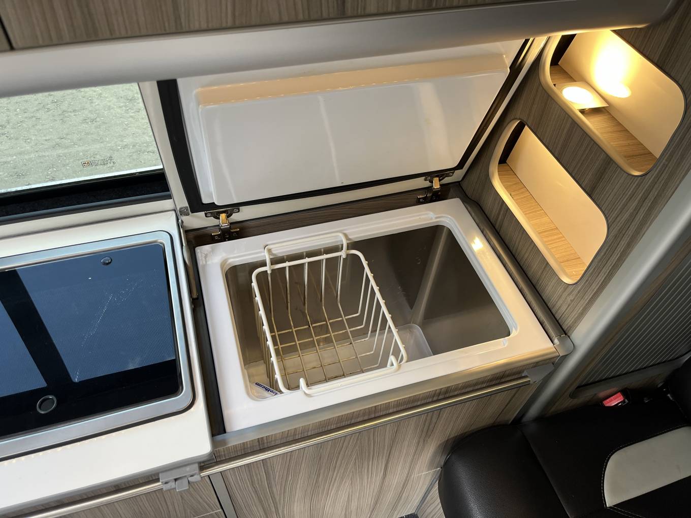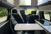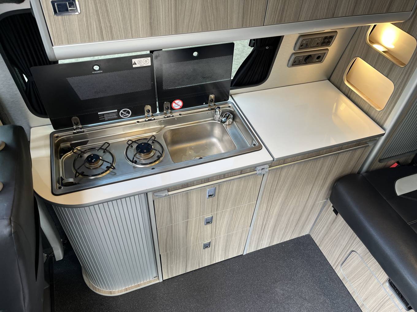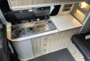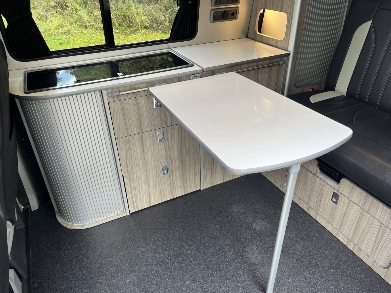 Here we have a 4 berth 2015 Volkswagen T5 T28 2.0 Startline TDi, 5 Owners, Manual, lovely professional conversion, 5 Seat Belts, Pop Top, Rock & Rock Pull Out Bed, Kitchen - Fridge, Hob & Sink & Grill, Night Heater, Tailgate, 240v Electric Hook Up & 12v, Leisure Battery, Solar Panel, 2 Front Seats with Captains Swivel Seat, 2 Rear Belted Seats, Storage Cupboards, On-board Water Tank, Radio/ DAB/Apple Play.
