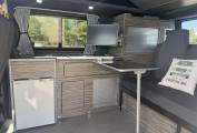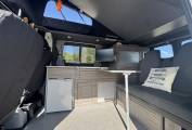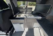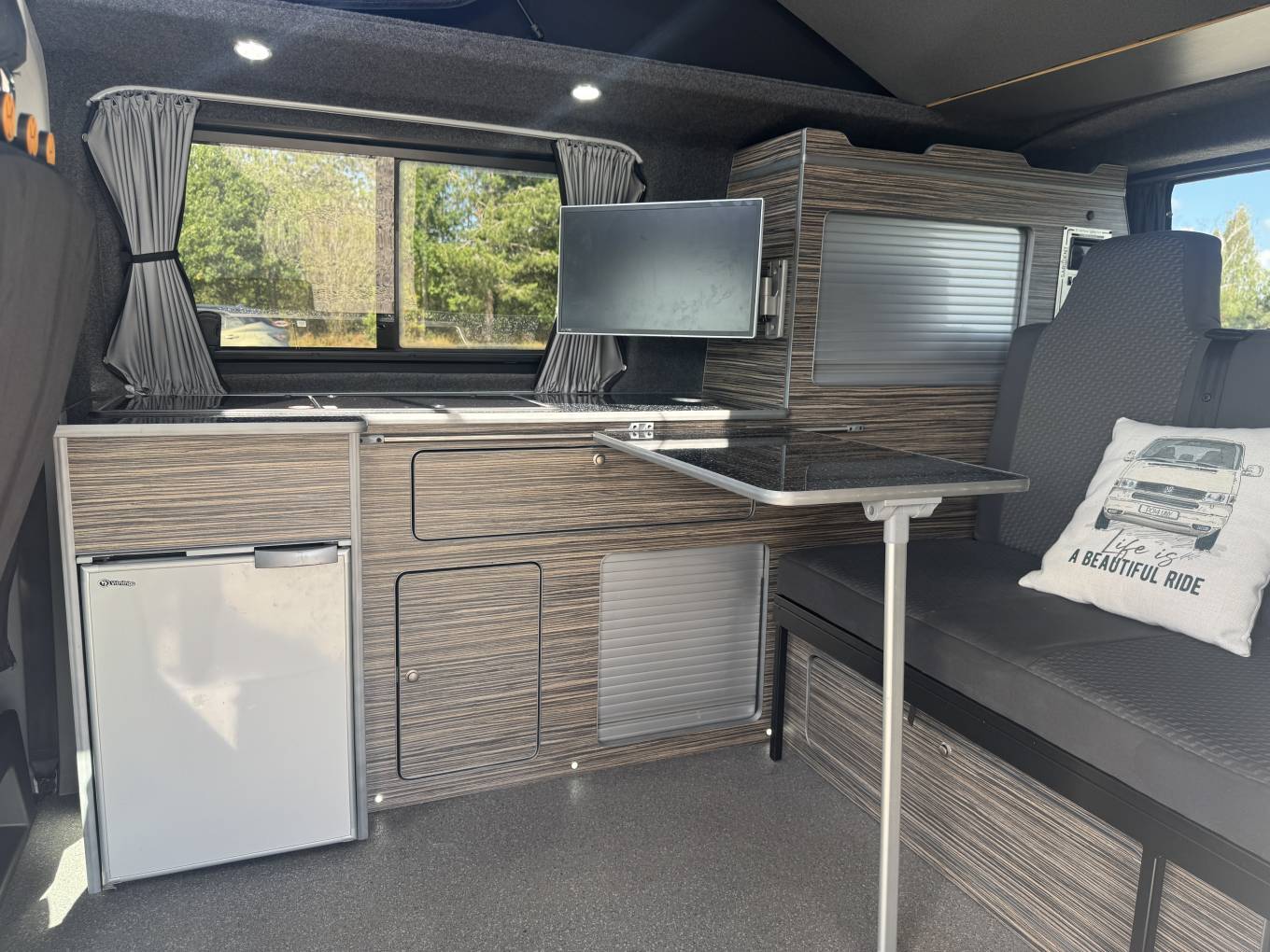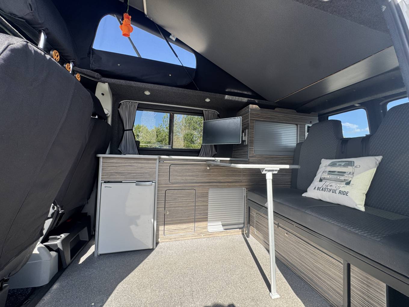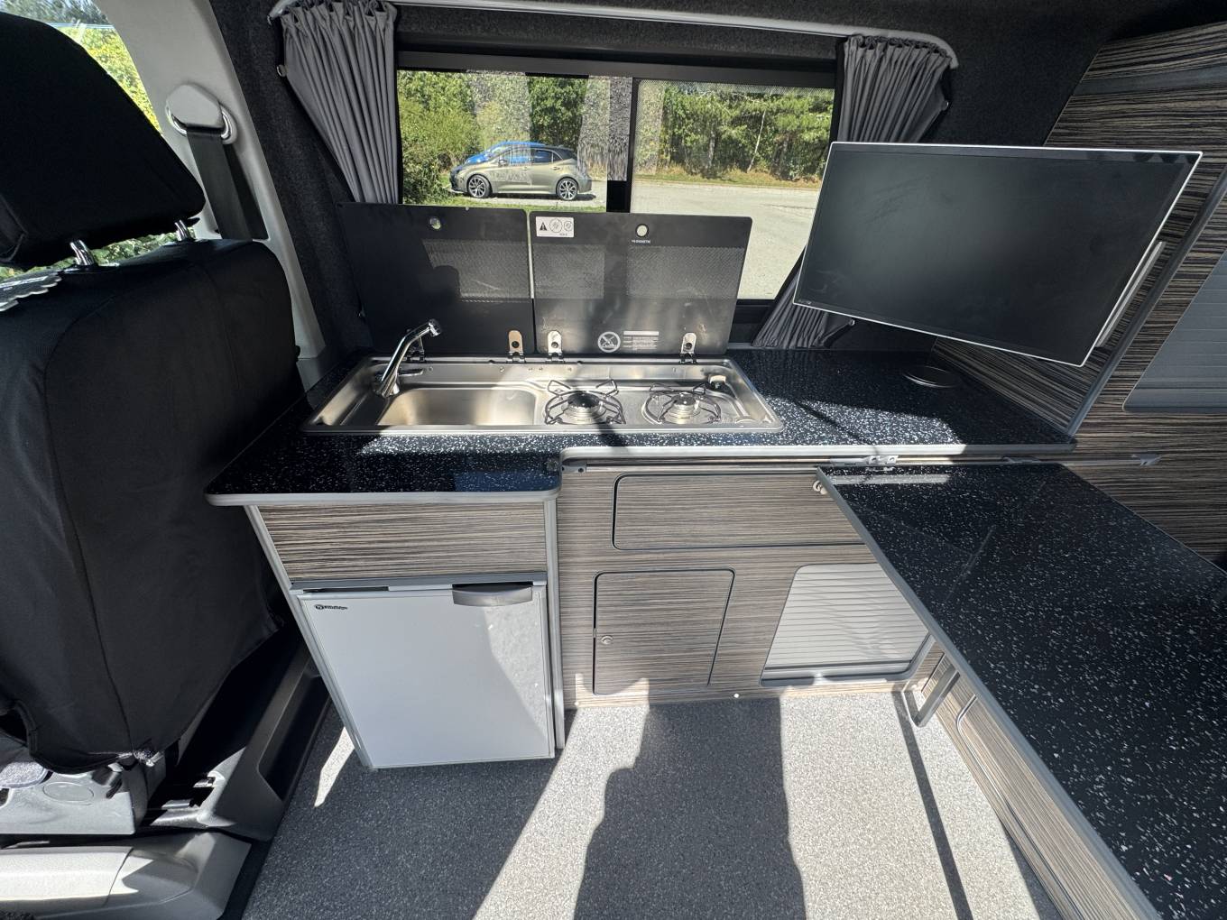 This campervan features a high-quality conversion designed to make the most of its space and practicality. Inside, you’ll find a rock ‘n’ roll bed, a compact kitchenette complete with sink and tap, twin hob, and plenty of storage, including a long length compartment running from the rear right through to the kitchen area. The pop-top roof includes a mattress, providing additional sleeping capacity and comfort.