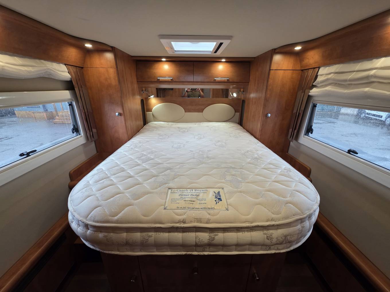 At the front the Carthargo it has the drop down bed with plenty of head space when it is at the up position. Large windows either side and a huge sky light that lets in so much natural lighting which is beautiful on those summer days.