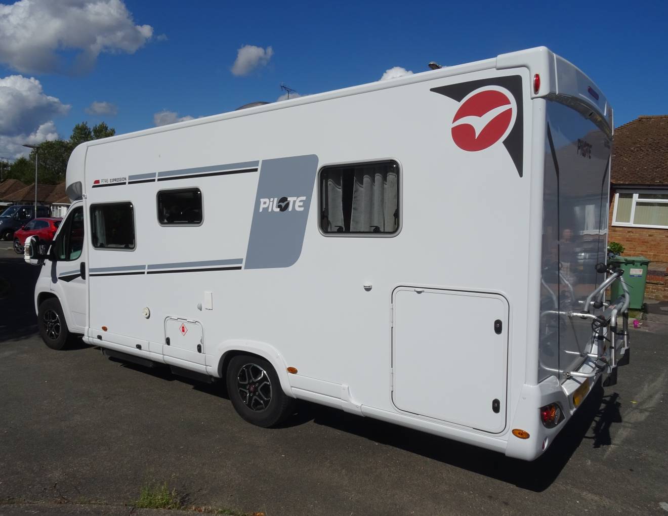 Pilote P746FC Expression - Fiat Ducato 2.2 - 9 Speed Automatic - 140 BHP - Euro 6 - 4 Berth - Full Habitation and Service History - 1 Owner From New - Large Garage - Rear Island Bed - Front Electric Drop Down Bed - En-Suite Bedroom with Separate Washroom and Shower - 4 Belted Seats (Fold up Side Sofa Travel Seats) - Unused Habitation Carpets - Solar Panel - £1000 Lithium Battery Upgrade - Cobra Alarm and Immobiliser - Cab Air Con - ID DAB+ Media with Sat Nav, Reversing Camera, Blue tooth - Cruise Control - Wind Out Canopy - External Shower Point - Bike Rack - Electric Step - Blinds and Fly Screens Throughout Including Hab Door - MTPLM 3500 - Length 7.45 metres - Width 2.35 metres Height - 2.88 metres - Available for viewing near Dunstable.