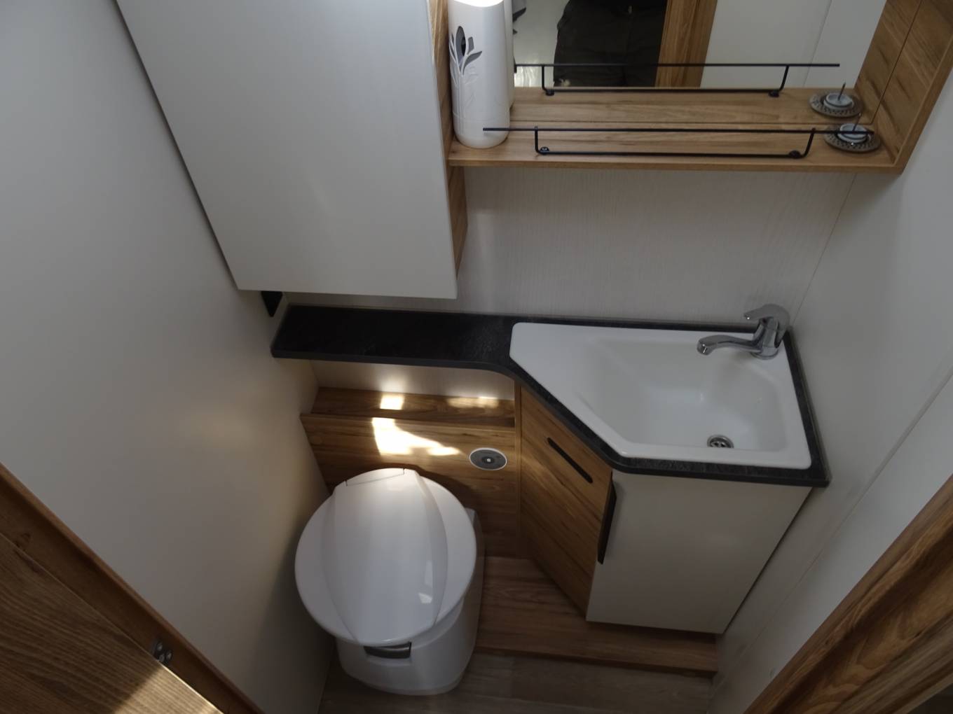 At the rear is the En-Suite bedroom with large lift up fixed island bed. The shower and washroom are separate and the washroom door is 2 point in order to split the En-suite from the kitchen.
