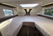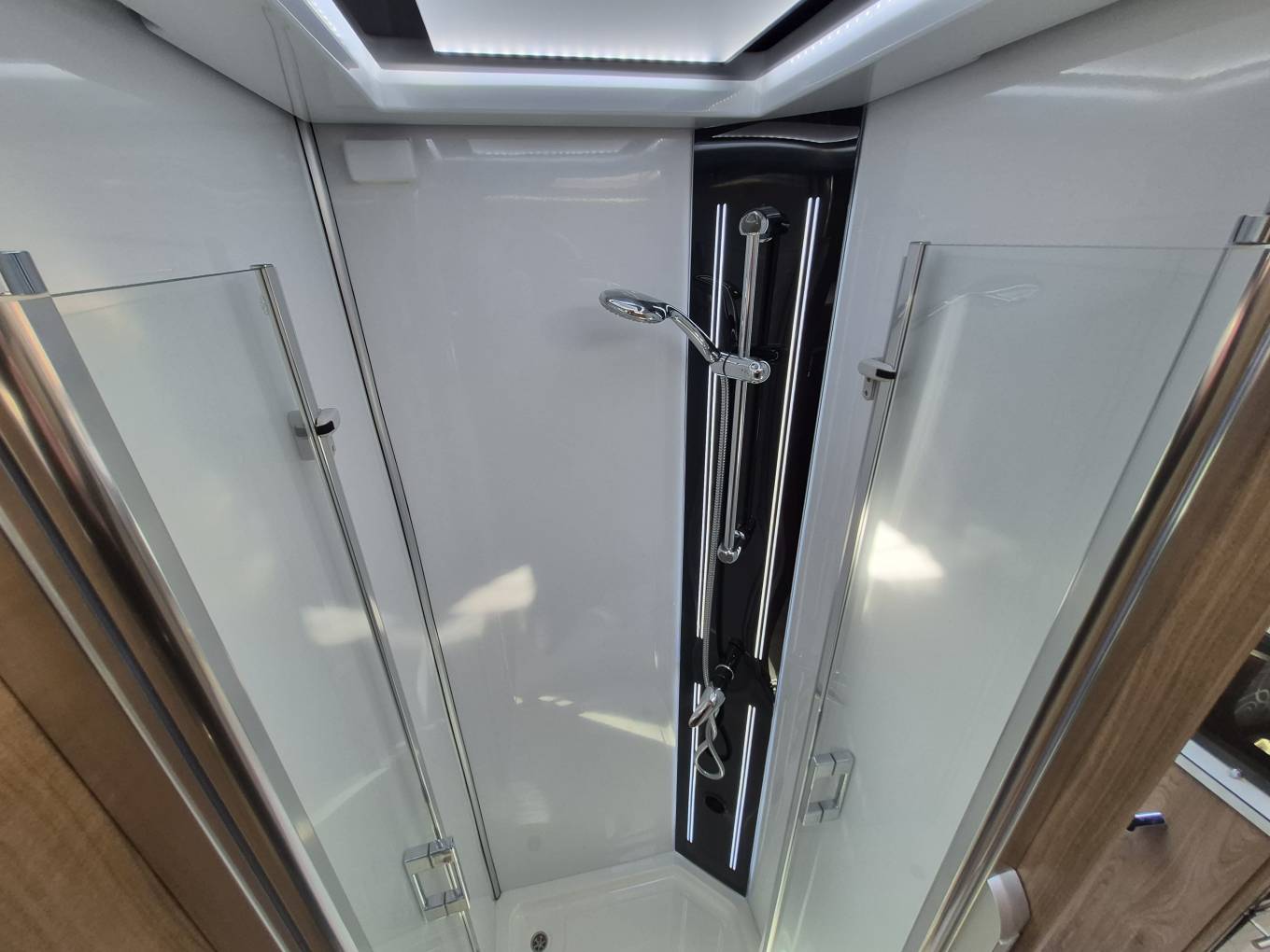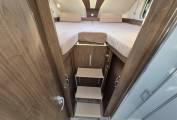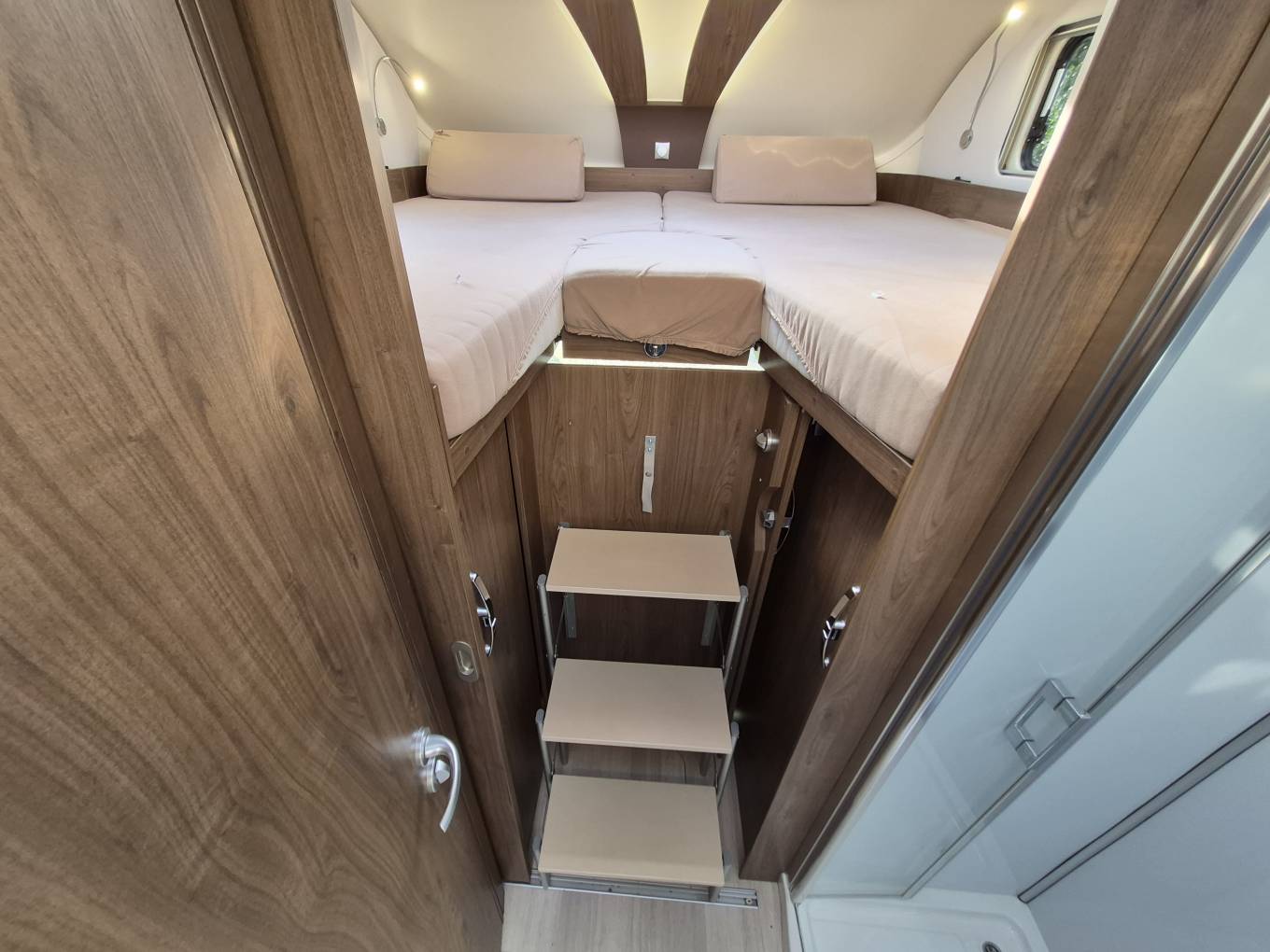 Towards the front is the spacious separate shower cubicle and opposite the toilet with sink and vanity unit, this area can be partitioned off to allow for total privacy for the shower area as well as the luxurious over cab twin beds with step access.