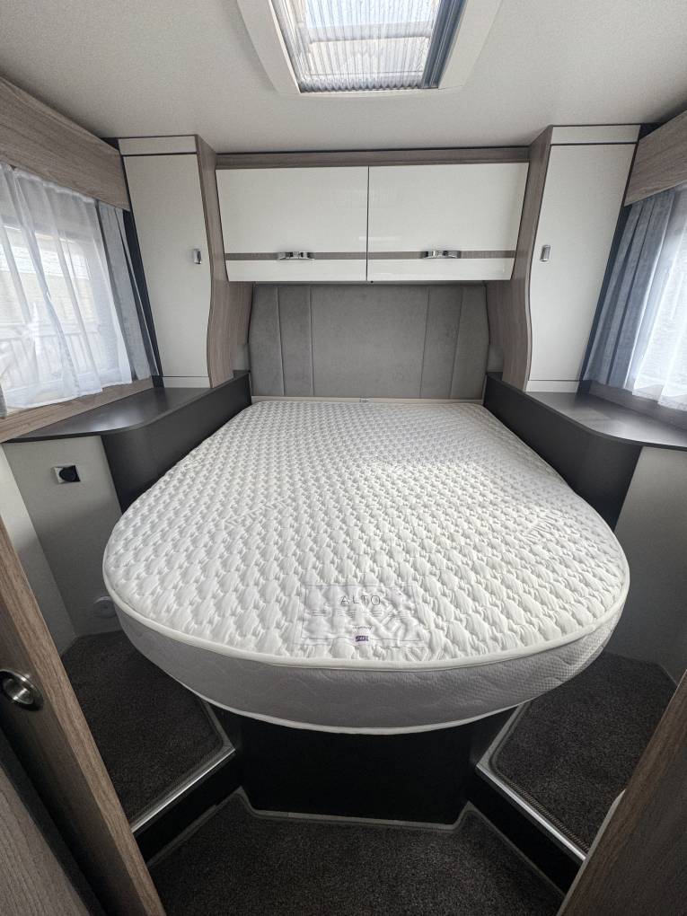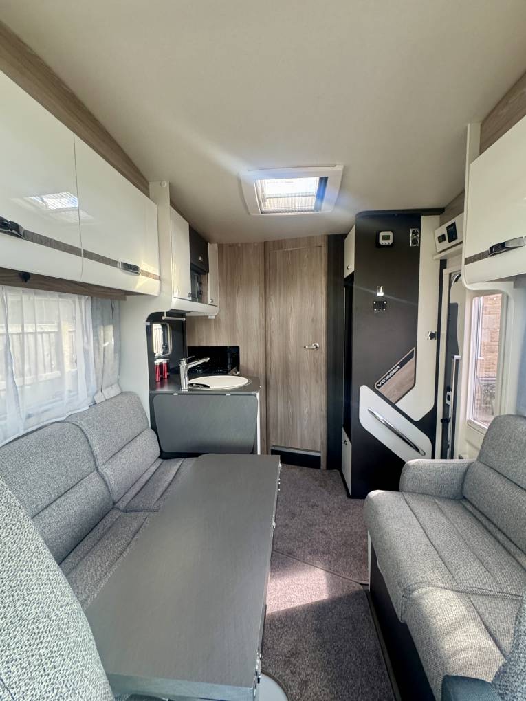 Undoubtedly one of the standout features is the superb bedroom featuring the ever desirable island bed layout. Next to the bed are 2 wardrobes with hanging rails and there is additional storage space in the overhead lockers. The bedroom area also has been carpeted for extra luxury.