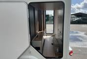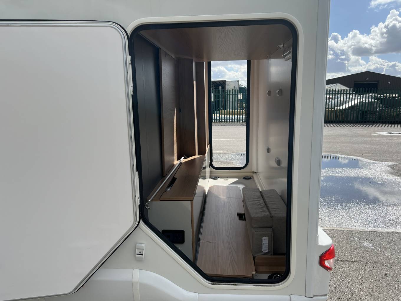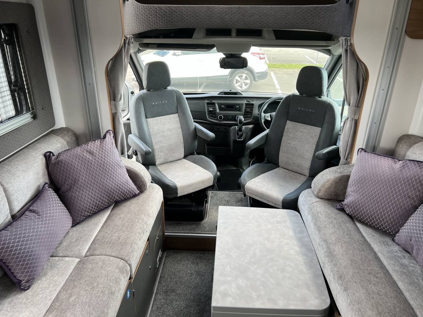 Upfront, it has 2 swivel seats, automatic gearbox, Remis blinds on all windows, DAB radio with Bluetooth and sat nav, twin lens rear facing camera/ mirror, cruise control and limiter, plus electric windows and mirrors.