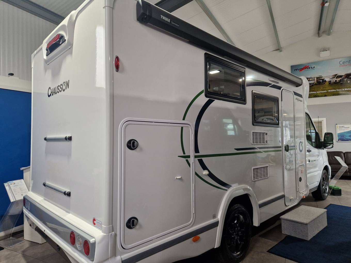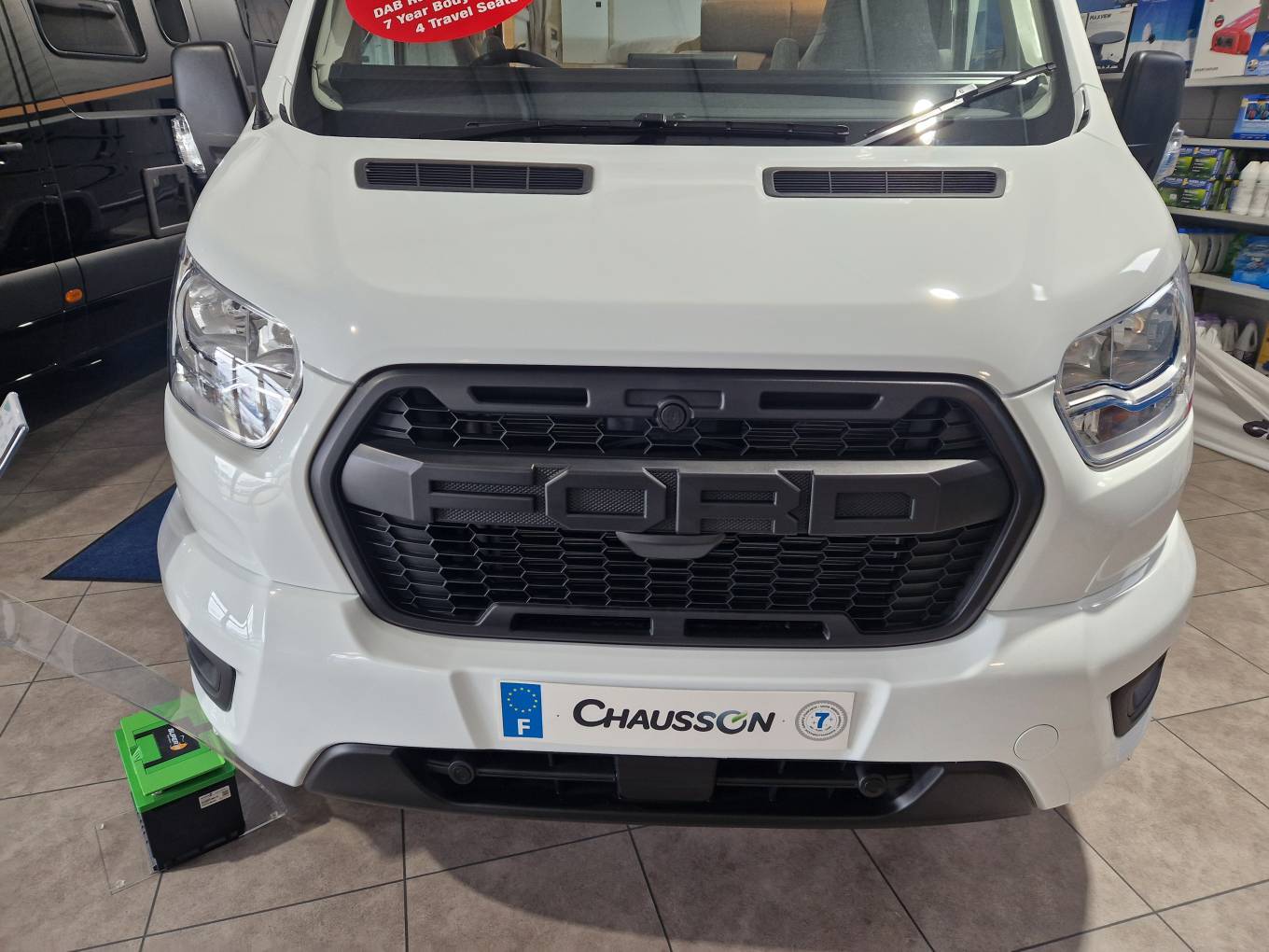 NEW AND UN-REGISTERED. CAN BE REGISTERED UK OR IRELAND. LOW COST DELIVERY AVAILABLE* 2025 Chausson S695 First Line 3 berth motorhome. With coach built insulation qualities and the narrow dimensions of a van, the first Line model has much to offer. The huge specification includes a Ford Transit 3500kg chassis, 1995cc 130hp engine, 6 speed manual transmission and Ford safety pack. Upgraded Ford alloy wheels and wild trak grille fitted ++ First Line accessory pack including awning, solar panel, door fly screen, cab blinds ++ Connect Pack with DAB upgrade & reverse camera ++ Cab air con ++ Cruise control ++ Twin Swivel chairs ++ Passenger air bag ++ On the road heating ++ 7 year body warranty ++ Grade 3 IRP insulation ++ Washroom with shower ++ 182 cm x 188 cm french bed ++ 87L fridge freezer ++ Hob & oven ++ 100% LED lighting ++ USB ports ++ Removable carpets ++Finance & part exchange available.