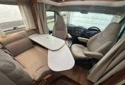 The lounge area located at the front of the motorhome consists of a 2 person bench seat with swiveling captain's chairs to create a larger living area. The table can also be extended outwards to enhance the dining experience.