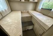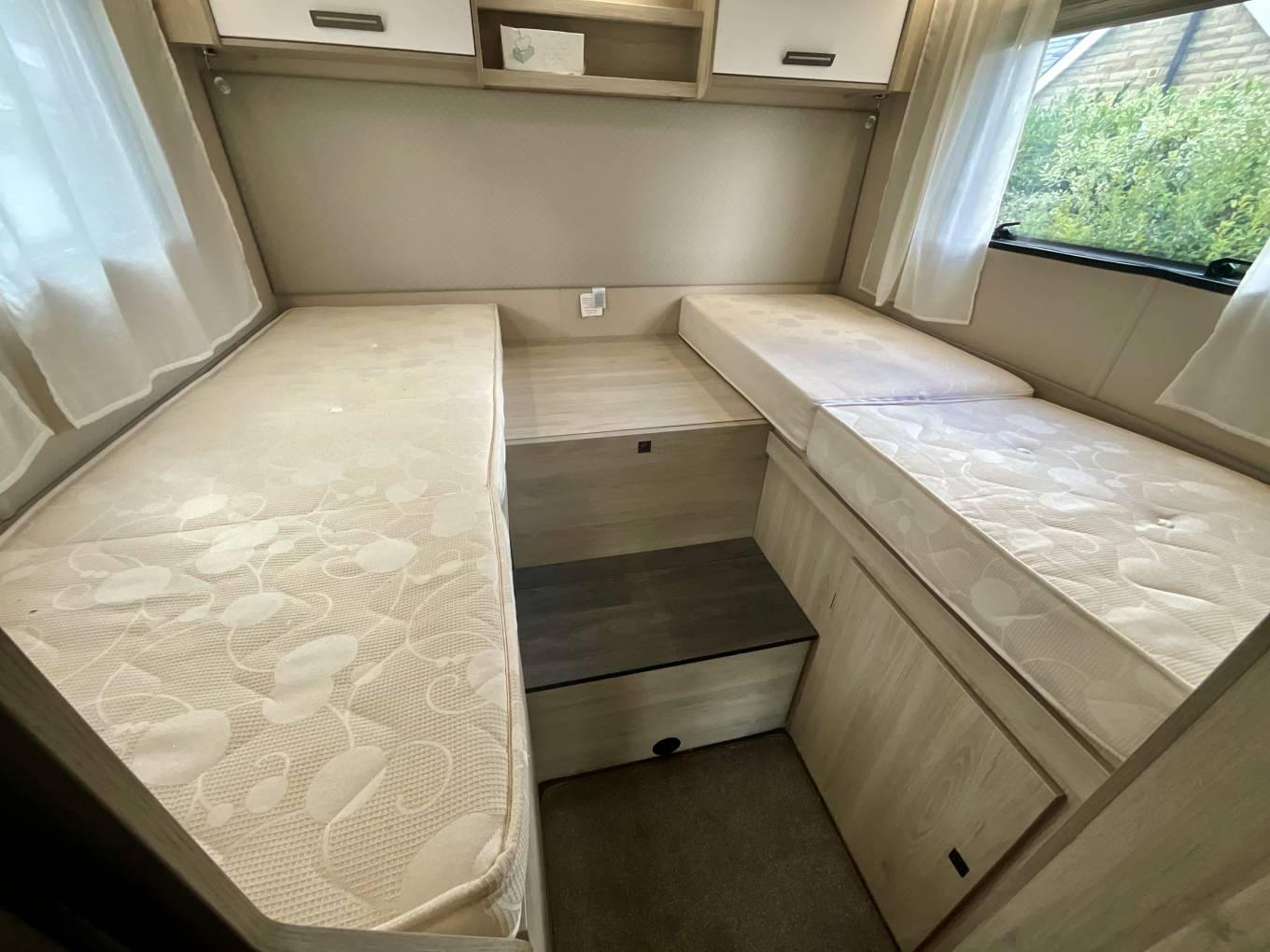 To the rear, the double bed can be used as two singles, and has plenty of storage underneath.