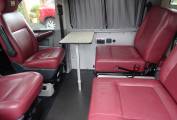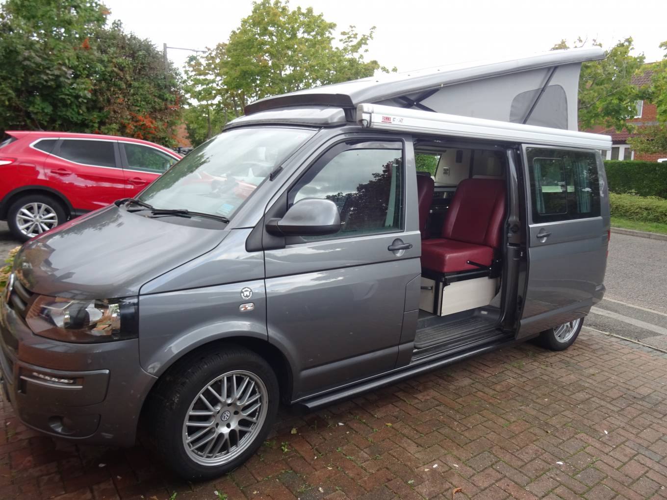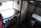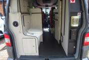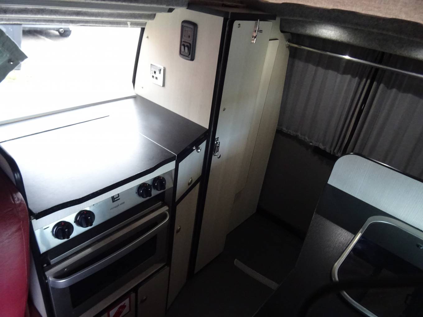 Both Cab Seats swivel to combine with the rear seats to make 2 single beds (6ft 1 x 2ft). There is a fold away table for dining, and with its rear belted seats this camper makes not only a perfect camper but also a great day van. The mid kitchen is very well designed, covers both sides and offers good storage. On the drivers side there is a covered hob and grill and the oven comes as an extra. Nearside is the first sink, fridge and more storage.