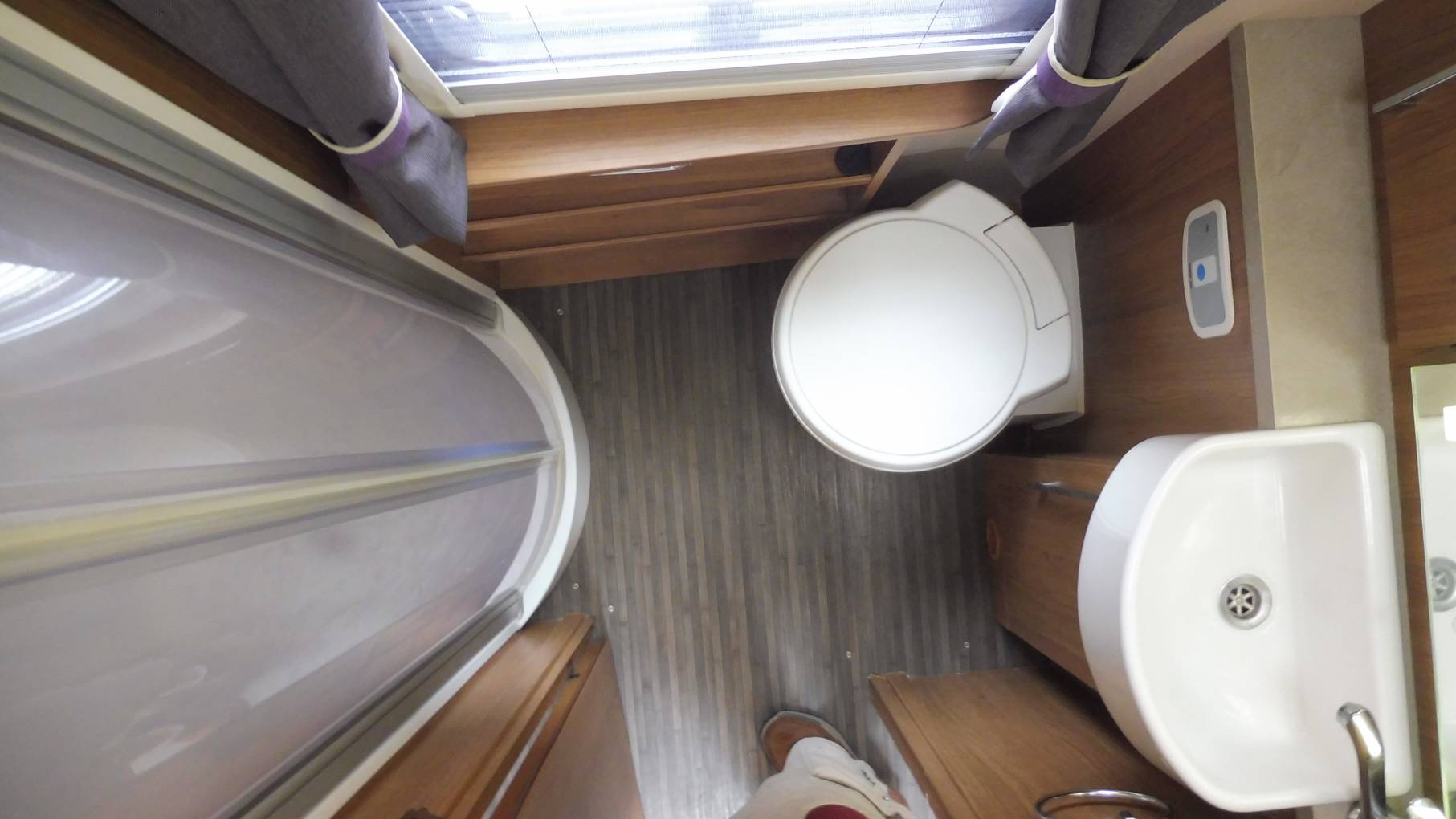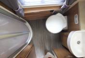 Starting with the rear of the motorhome, you have the full-width rear washroom which includes a shower cubicle, wash basin with mixer tap, Thetford toilet and plenty of storage space.