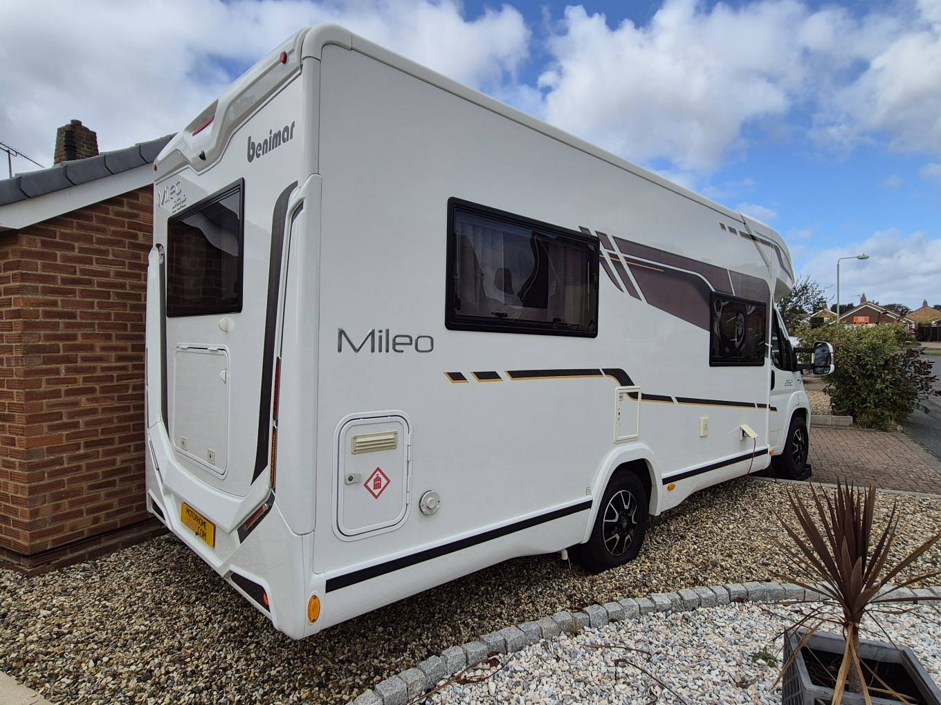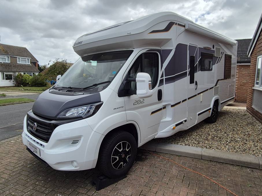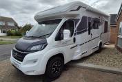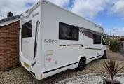 Outside there is access via the side and rear hatch door to the full width rear garage locker space, Habitation door flyscreen, Fiamma wind out awning, reversing camera, alloys wheels, air suspension, solar panel, full size spare wheel, TV aerial, gas locker with 2 x safefill bottles, wing mirror protectors and mains hook up cable point.
