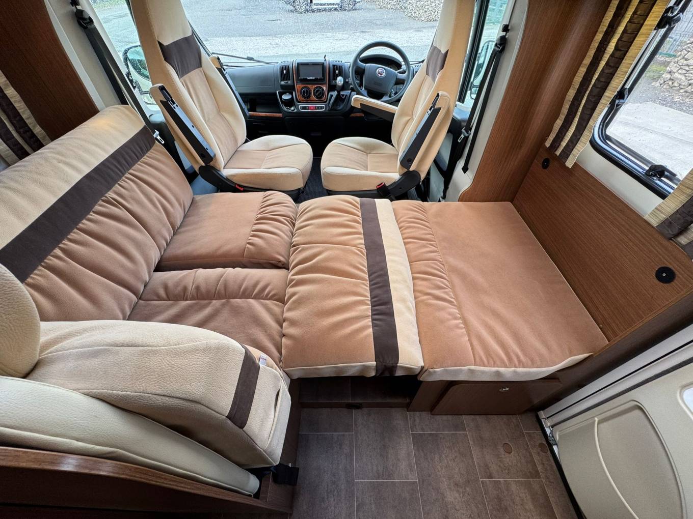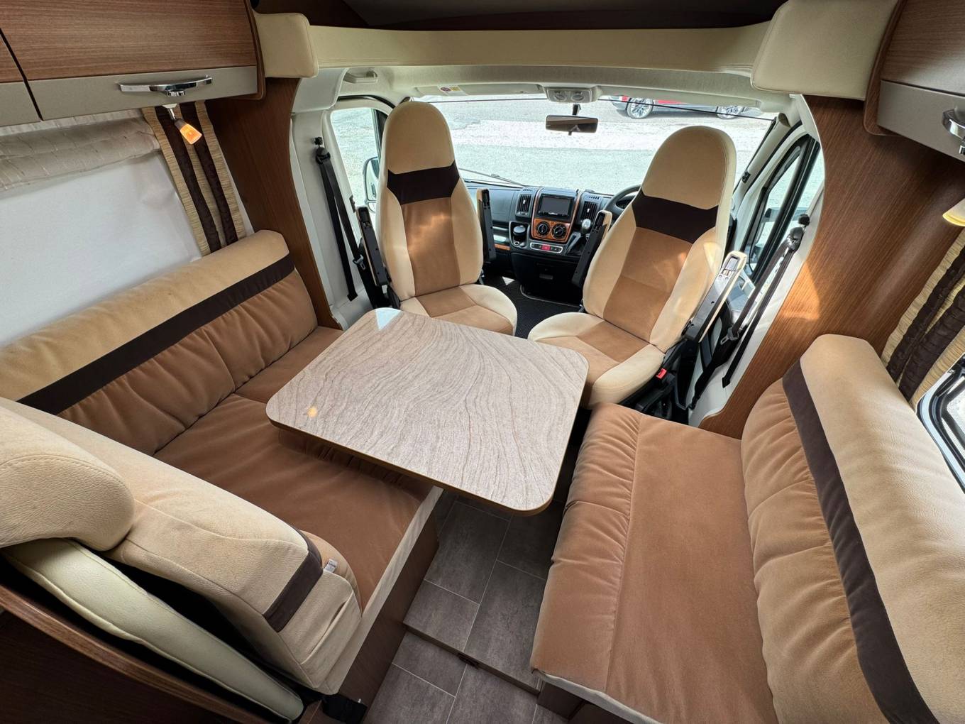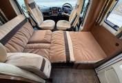 The dining area is designed for socialising and relaxing, with a sturdy table and seating equipped with four seat belts. Both driver and passenger seats swivel to maximise space and comfort when parked up.