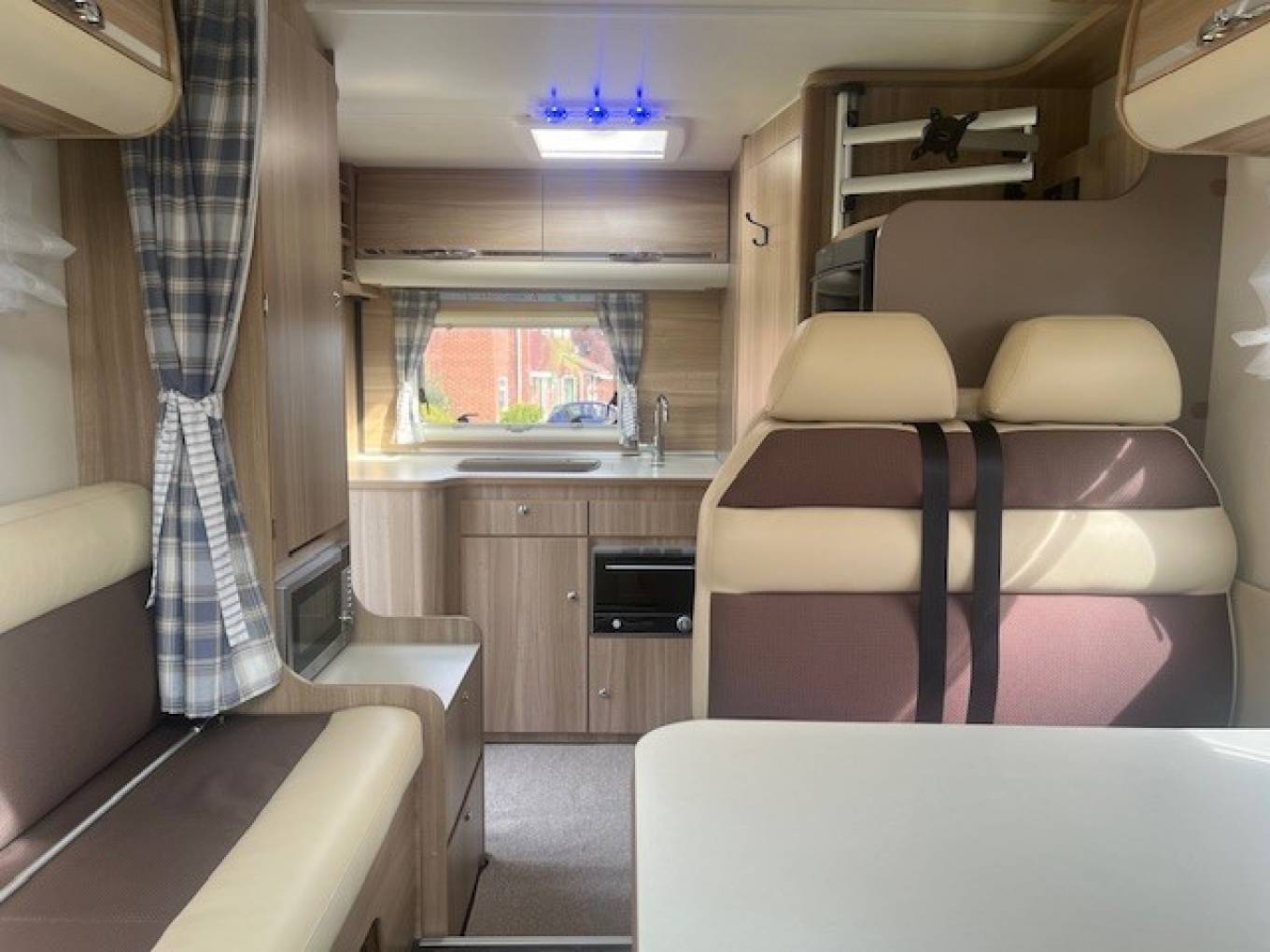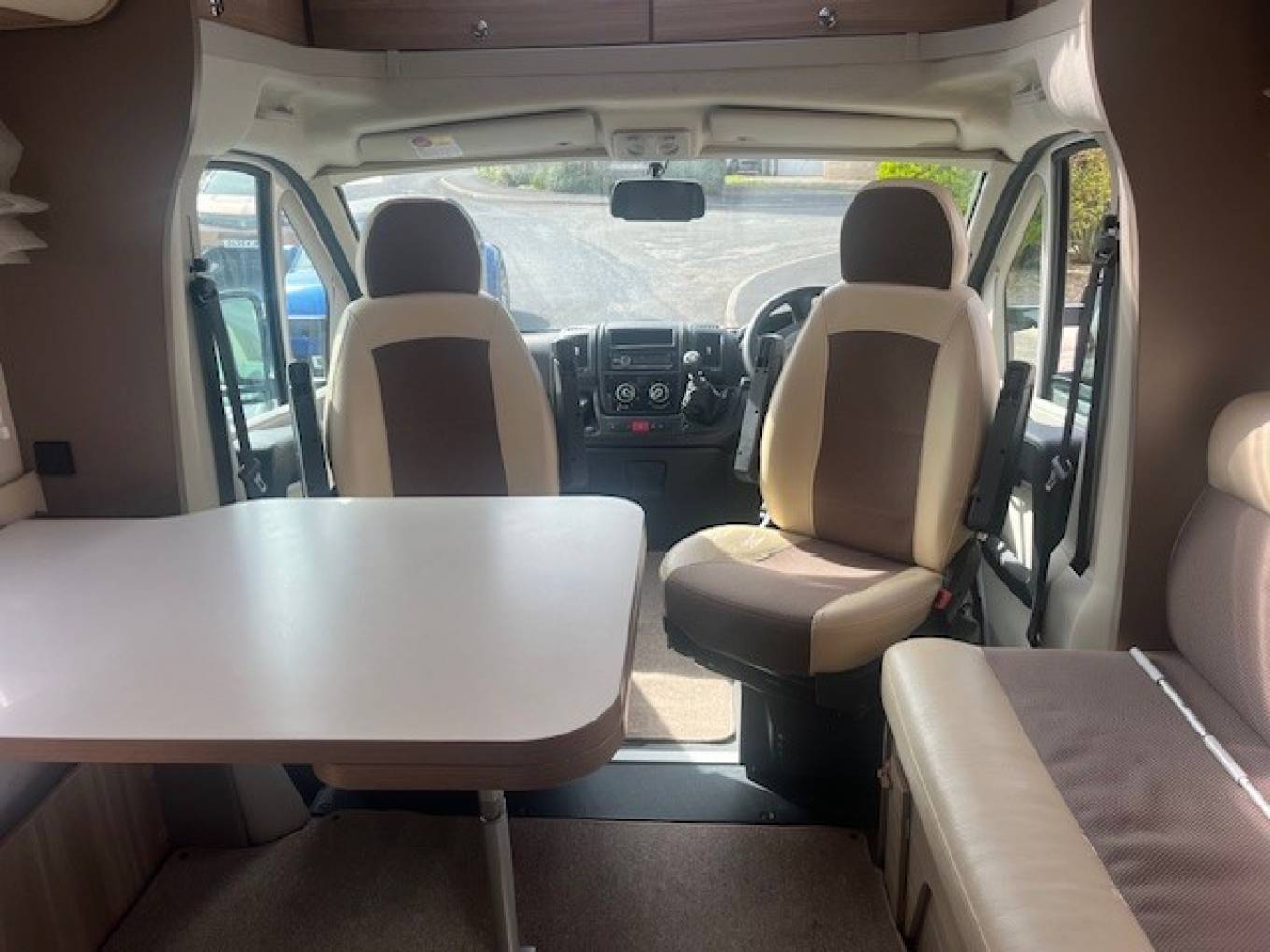 Spec includes, Wind Out Awning, 4 x Travelling Seat Belts, Swivel Cab Seats, Good Rear Garage Space, Cab Aircon, Radio, Truma Digital Heating and Hot Water System, Gas Bottle, Wing Mirror Protectors, Fiamma Door Locks, Cab Blinds, Full Set of Carpets, Sunroof, Blinds and Flyscreens Throughout, Cruise Control, Large Wardrobe and Drawers, Aerial, TV Bracket, Table, More than Ample Storage Throughout
