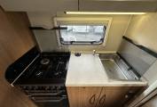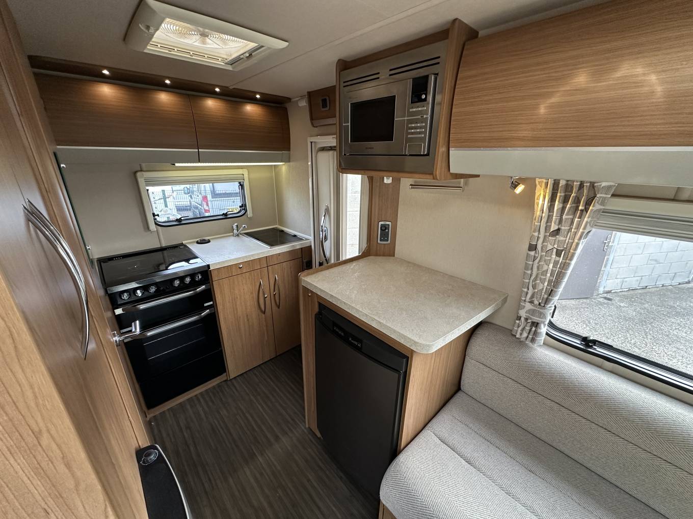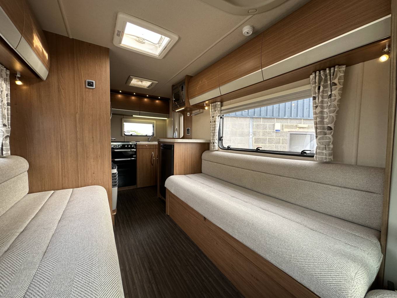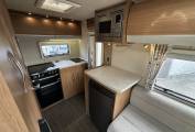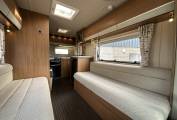 The super-compact 615 majors on simplicity in an uncluttered, open-plan layout which provides a roomy lounge, generous double bed, good-sized corner washroom and WC with separate shower cabinet as well as a well-equipped end kitchen. A truly classic layout with swivelling cab seats, twin long sofas this layout simply works perfectly for two people to enjoy their trips away.