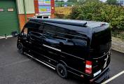 The vehicle has a full body kit and is finished in midnight black gloss.
