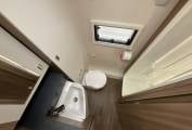 The well-designed washroom offers a shower, basin and cassette toilet, providing all the facilities you need for extended touring. Heating and hot water are supplied by the efficient Truma Combi system, ensuring year-round comfort. LED lighting, USB charging points, a TV with aerial and plentiful storage throughout add to the sense of convenience and modern living, while the addition of a solar panel makes this motorhome ideal for off-grid adventures.