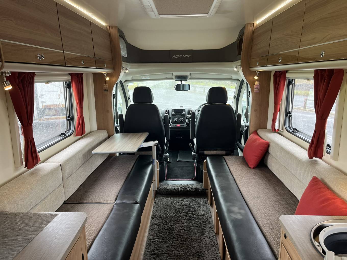 Swivel seats in the Cab can be used in conjunction with the movable coffee/dining table which is mounted on a versatile flexible 'Lagun' leg.