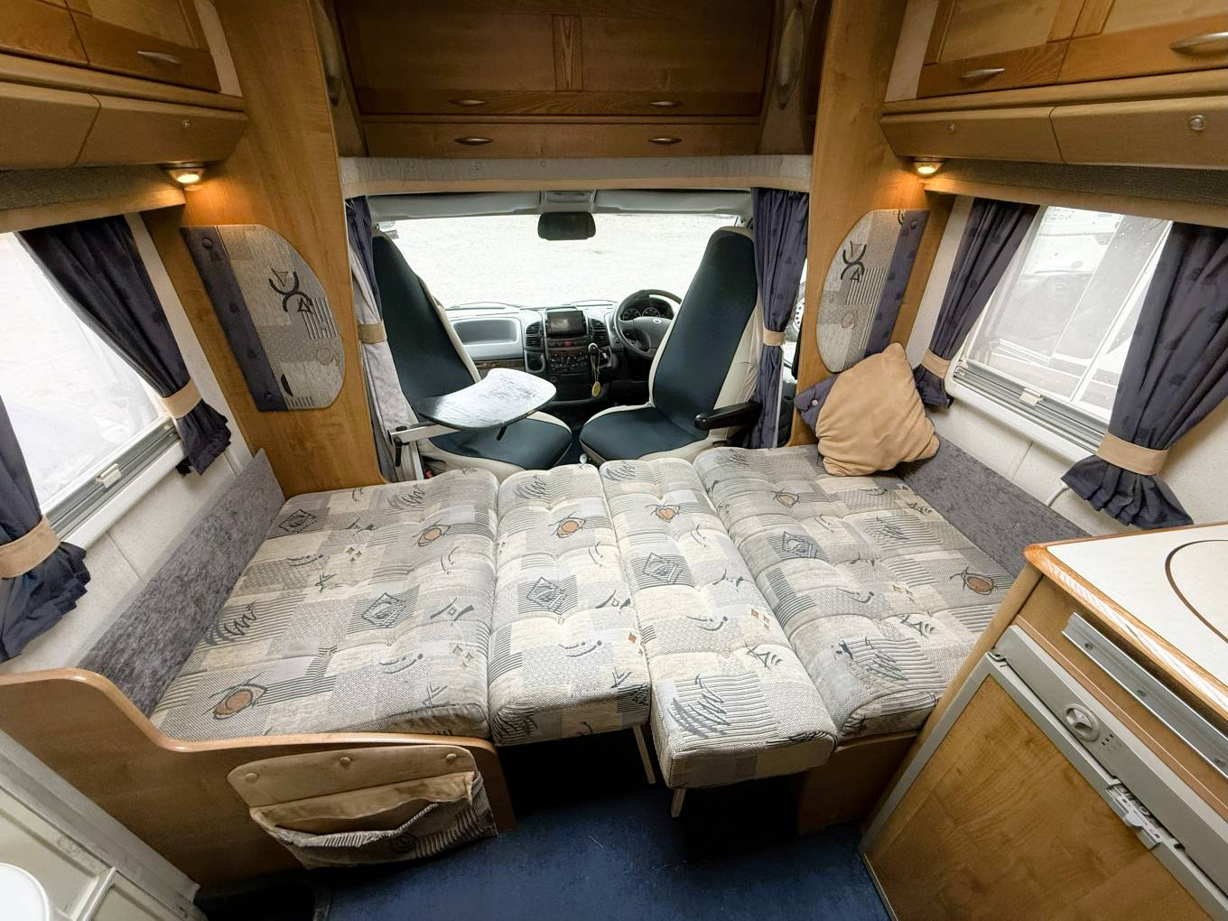 Motorhome Depot Wrexham & Gwynedd are pleased to be able to offer this popular 4 berth, 2 belt motorhome from Auto-Trail. Offering spacious accomodation and a fixed bed in a compact 6.5m chassis and weighing in at 3400Kg so can be driven on a standard UK license. Based on the Fiat Ducato with 2800cc diesel engine with 5 speed manual transmission. Comes with a comprehensive service history and a new 12 months MOT and 6 month warranty.