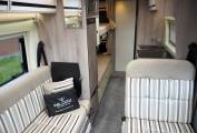 Onboard domestic facilities include 100 litre fresh and waste water tanks, 30 litre domestic LPG tank, Truma dual fuel heating and hot water, full electrics with charging system and solar panel. Fit and finish are to a very high standard throughout, with many fine details. Up front the cab is well equipped with reversing camera and sensors, cruise control, cab air conditioning and integrated night blinds. The 138bhp engine powering through a six speed gearbox makes for easy driving with light controls. Outside, there is a full length roll out sun canopy, LPG filling point, rear door access to toilet cassette and additional storage.