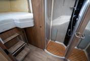 Comfortable Sleeping Accommodation: The Lounge area can be re-worked as a spacious double bed should four berths be required, with 2 fitted seat belts for a true 4 berth motorhome. The main sleeping accommodation is found above the cab. This comfortable sleeping area drops down electronically and is accessed via a ladder, conveniently found in a pull-out cupboard. A deluxe memory foam mattress ensures a comfortable night.