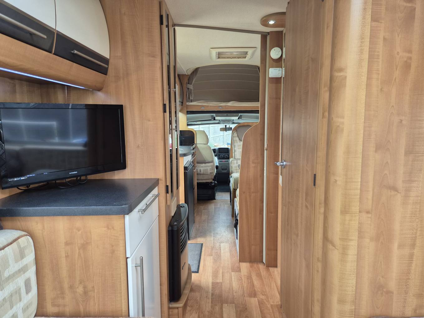 Motorhome Depot are pleased to bring to market this excellent 2011 6-berth,6-belt family motorhome. Based on the Fiat Ducato, it is powered by the 130BHP 2.3 Multijet diesel engine and 6-speed manual gearbox. Having covered 43533 miles it comes with a recent Hab check and fresh MOT with no advisories. It has a GVW of 4005kg so it will require a C1 UK licence and is 7.54m long. The Auto-Trail Apache 700 is a luxury motorhome that has a great standard spec. Starting at the front, the cab is fully equipped with air conditioning, upgraded DAB radio, immobiliser and cruise control, in addition to Remis blinds that cover the windows and windscreen. Above the cab is a spacious double bed that is accessed by the luton ladder. This area allows plenty of natural light with the spacious curved skylight that features both fly and full blinds. The front lounge/diner can comfortably seat six, and has a large table that is great for meal times and socialising and at bedtime easily converts to a double bed. A kitchen sits opposite the front lounge, fully equipped with everything the travelling chef needs, including oven with grill, Thetford gas and electric hobs, extractor fan, brand new fridge with freezer compartment, sink with large basin, microwave and plenty of storage for cutlery, crockery and condiments. At the middle of the motorhome, there's a generously sized washroom featuring a large shower cubicle, Thetford toilet, and fixed basin and roof light supplying natural light. To the rear, which can be closed off with a screen partition, a sizeable lounge area with free standing table can be set up for socialising and meals, whilst taking in the view from the large windows that allow plenty of natural light. There is also a TV in this area, overhead storage and wardrobe offer great amounts of space, along with under seat storage that is accessible from the outside an this can also easily convert into a large double bed and the Truma blown air heating and space heater keeps things toasty during Winter months. Outside, there is a large wind-out awning, water fill up point, solar panel and a 240v hook up slot and a good size storage space at the rear make up the great spec of this motorhome.