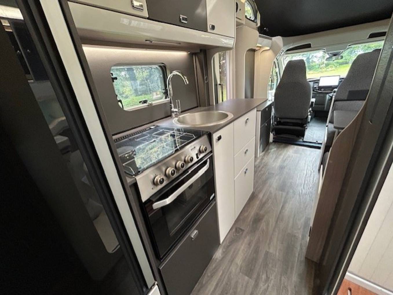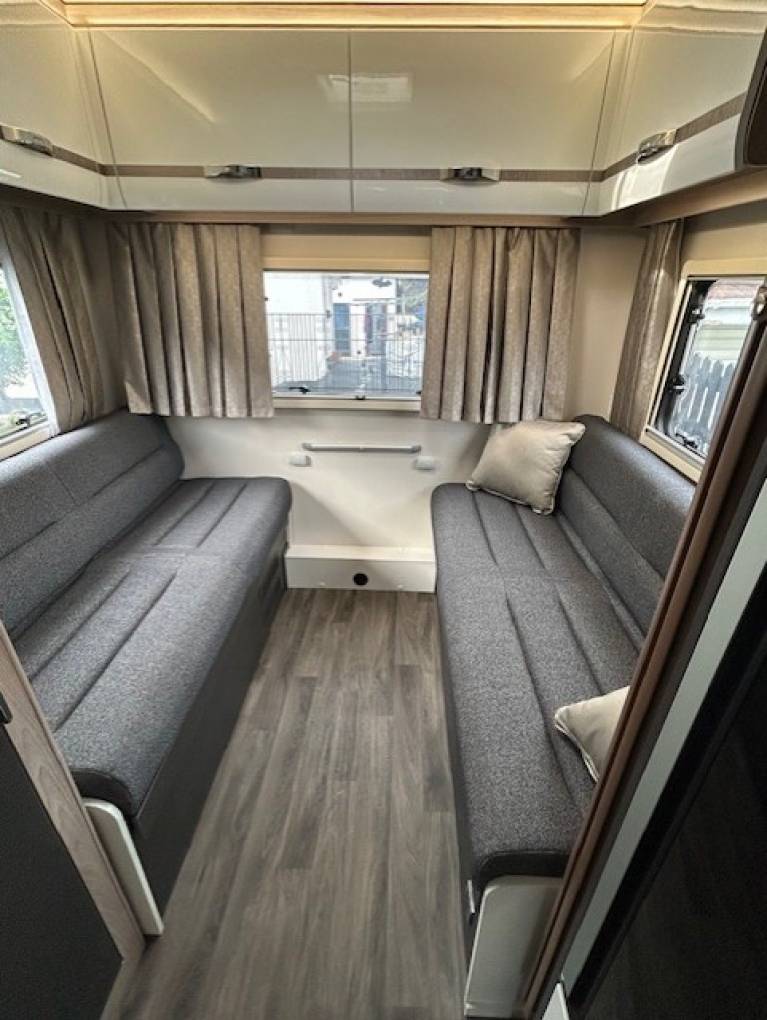 The high specification list includes a 120 watt solar panel, 16" alloy wheels, external shower point and BBQ point, Isofix for seats, parking sensors, removable carpets and LED lighting system.