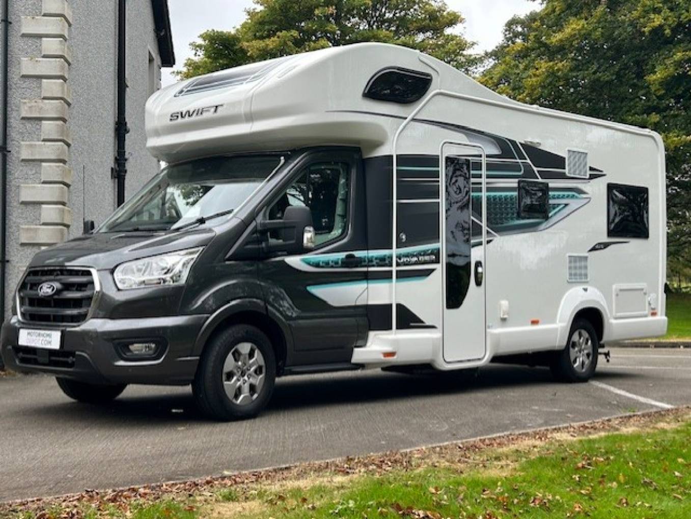 2025 SWIFT VOYAGER 475 COACH BUILT 5 BERTH MOTORHOME FOR SALE. First registered September 2025. This award winning Swift Voyager 475 is designed for families. Providing great use of space without compromising on comfort. The upgraded grapics give the motorhome a modern look. The family friendly interior will provide good living space for adults and children.