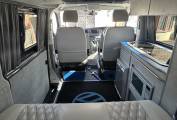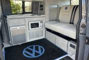 Comfortably sleeping 4 people this campervan is ideal for a couple or a family of 4. There is a Rock ‘n’ Roll bed which is quick and easy to make up and the bed in the pop-top roof will comfortably accommodate another 2 people. Both front seats swivel to create a sociable dining and relaxation area, while the Webasto diesel heating system ensures year-round comfort.