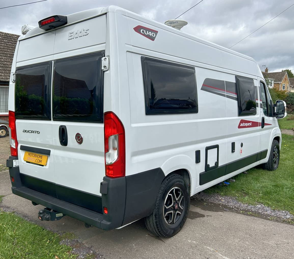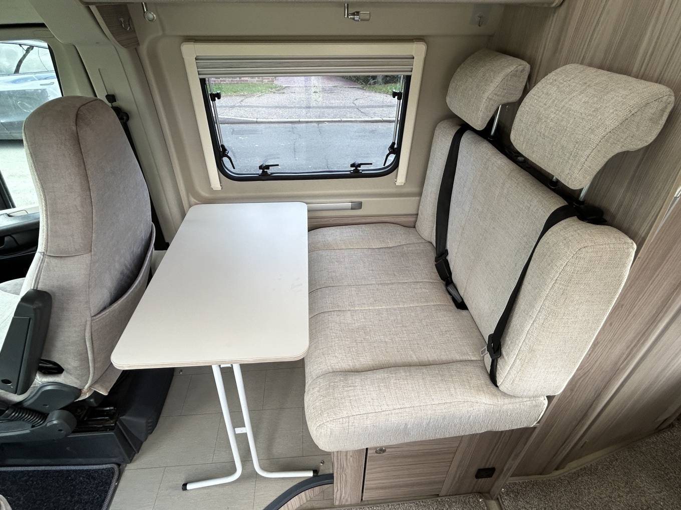 This motorhome comes fully equipped for both short trips and longer adventures. Highlights include a wind-out awning, Apple CarPlay/Android media system, two swivel cab seats, a reversing camera, and cab air conditioning. For added peace of mind, it is fitted with a tracker and the fact that it has a tow bar opens up options for bike or scooter racks or towing a vehicle.