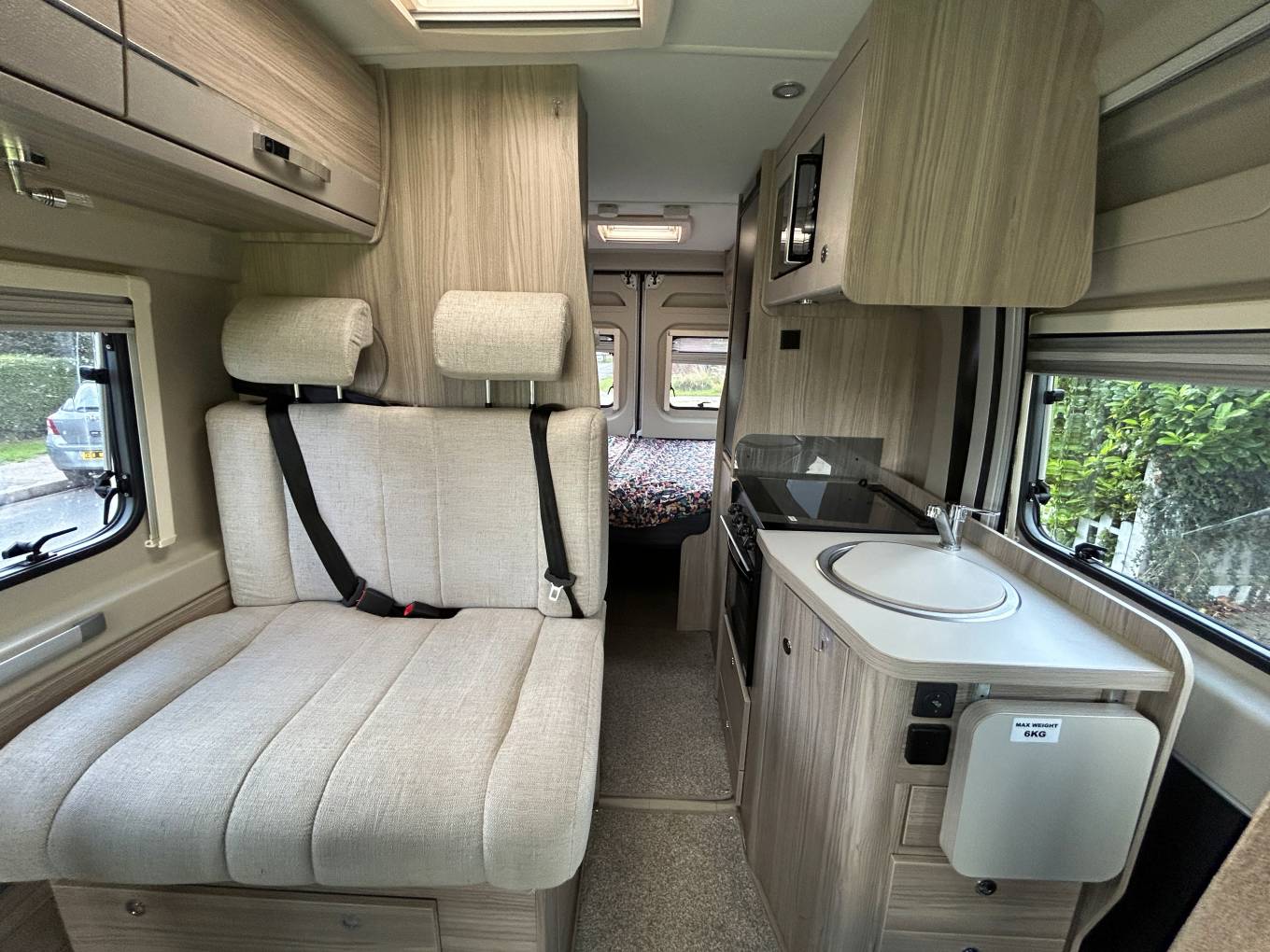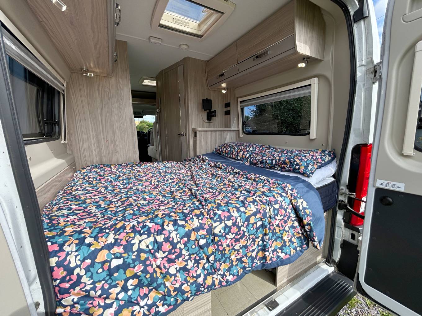 This gorgeous 2022 3-berth campervan offers a perfect blend of comfort, practicality, and driving pleasure. Built on the class-leading Fiat Ducato chassis and powered by a smooth 2.2L engine, it features the superb Fiat 9-speed automatic gearbox, which truly sets it apart. This gearbox is a joy to drive—seamlessly shifting through the gears to deliver an effortless and refined driving experience, whether you’re on the motorway, winding country roads, or navigating town streets. With only one careful owner and just 17,159 miles, it has been very well looked after and is presented in excellent condition.