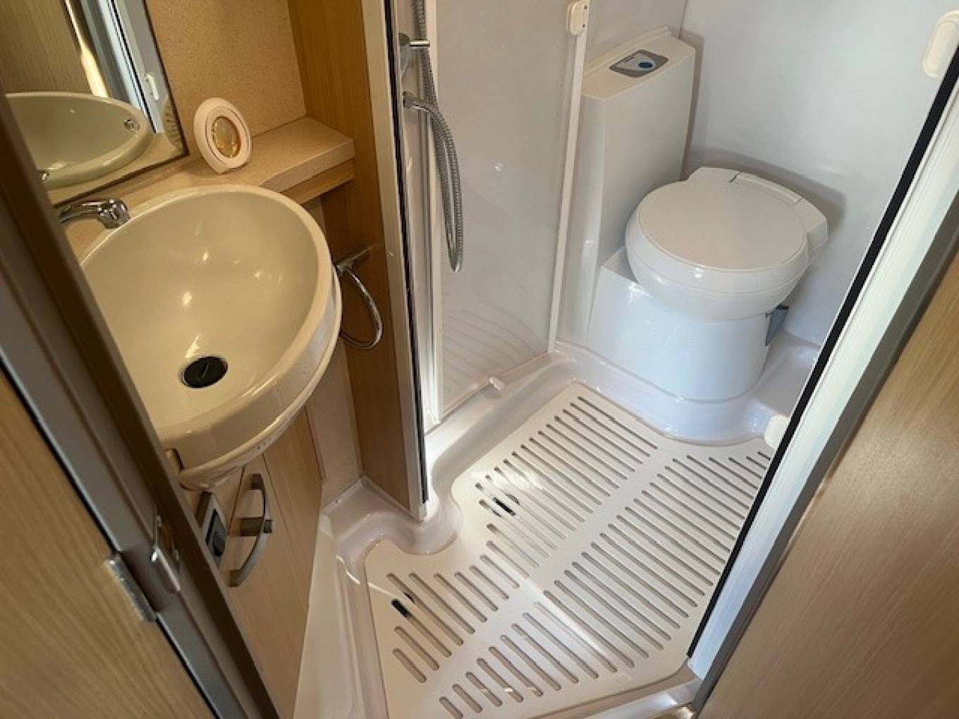 The E510 benefits from a Very Spacious Washroom with Toilet, Washbasin and Shower Cubicle