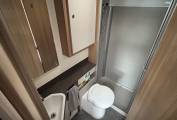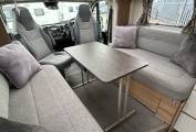 Inside, you’ll be greeted by a bright and spacious lounge with swivelling captain’s chairs, a comfortable dining area, and premium upholstery – perfect for relaxing after a day’s adventure. At meal times, pop up the freestanding dining table and up to 6 people can dine comfortably together. At night the sofas transform easily into a double bed, while the fixed rear bed provides the ultimate in convenience and comfort, always ready when you are.