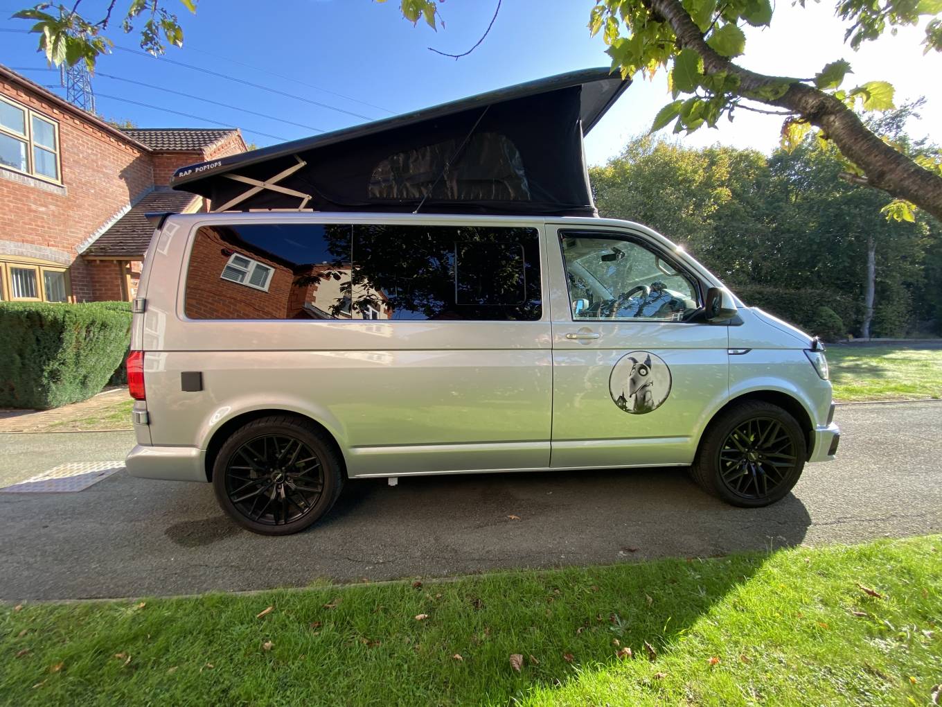 Included with the campervan: a Vango Elwood Low air awning, a Porta Potti and a blackout windscreen cover.